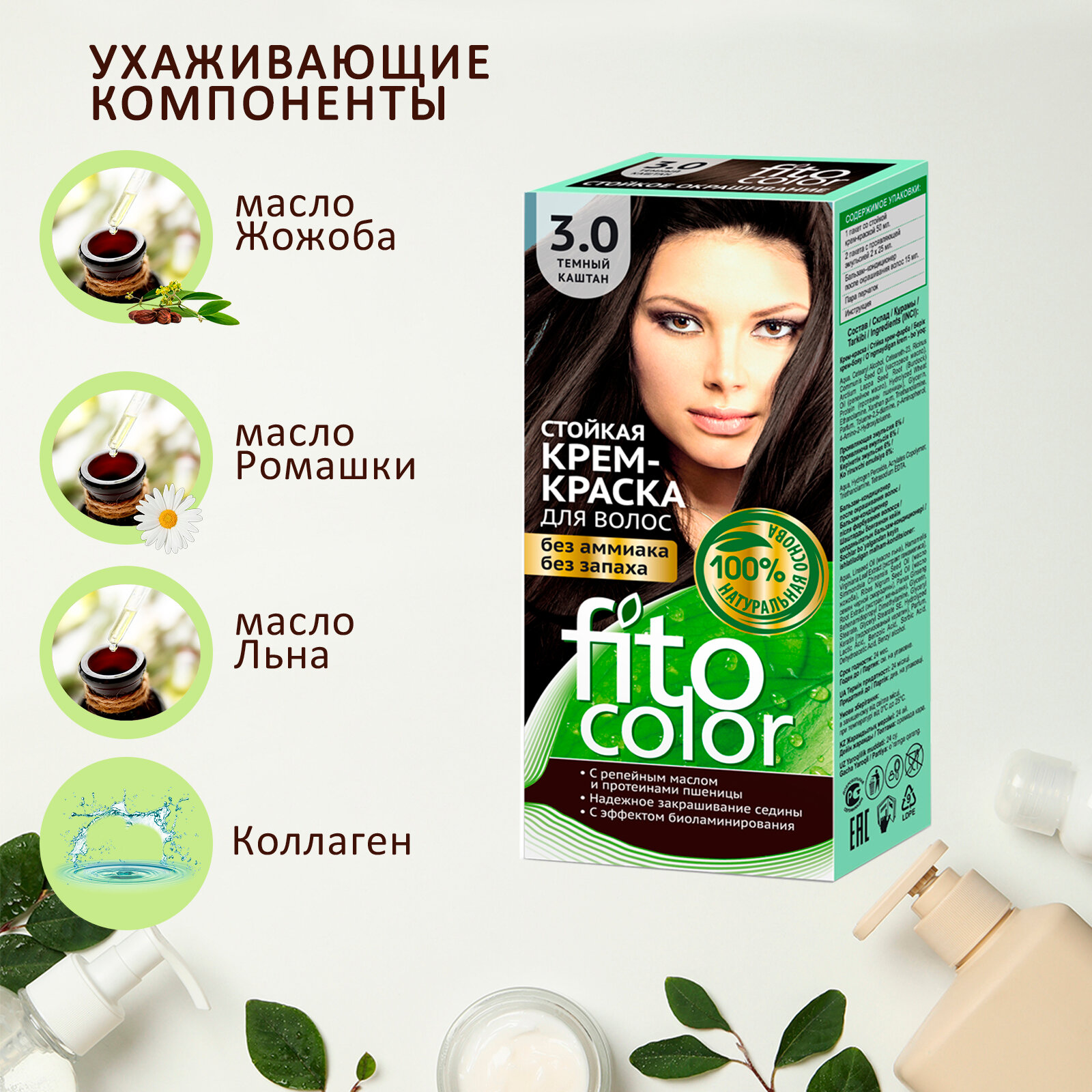 Стойкая крем-краска для волос без аммиака FitoColor Fito косметик,3.0 Темный каштан, 115 мл (в наборе 3 шт)