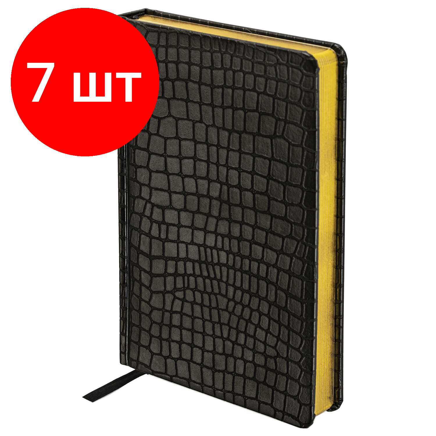 Купить Комплект 7 шт, Ежедневник полудатированный А5 (148х218 мм) BRAUBERG "Alligator", кожзам, 192 л., черный, 124985