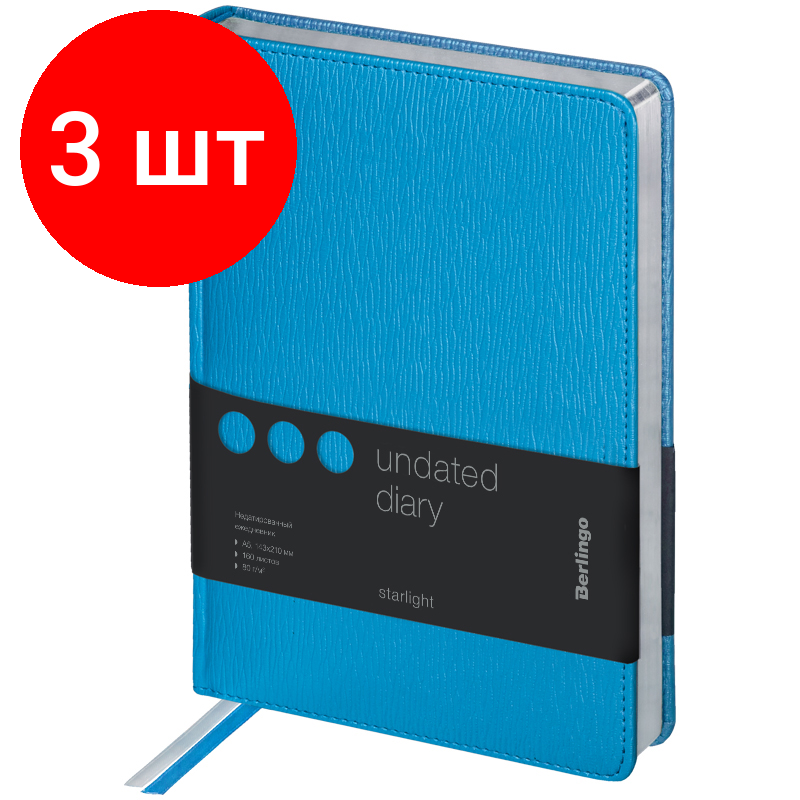 Купить Комплект 3 шт, Ежедневник недатированный, А5, 160л., кожзам, Berlingo "Starlight", серебр. срез, голубой