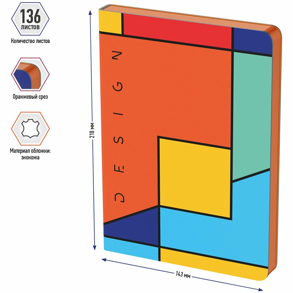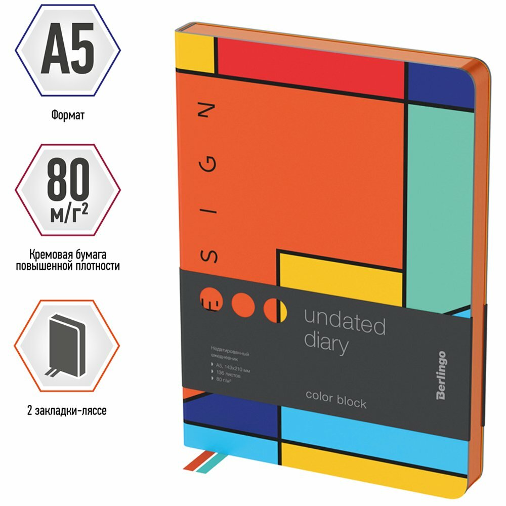 Ежедневник недатированный BERLINGO А5, 136л., кожзам, "Color Block", оранжевый срез, с рисунком