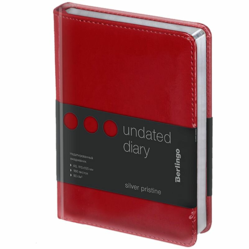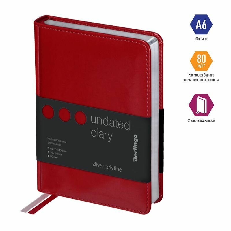 Ежедневник недатированный Berlingo A6, 160 листов, кожзам, "Silver Pristine", серебряный срез, красный (UD0_82602)
