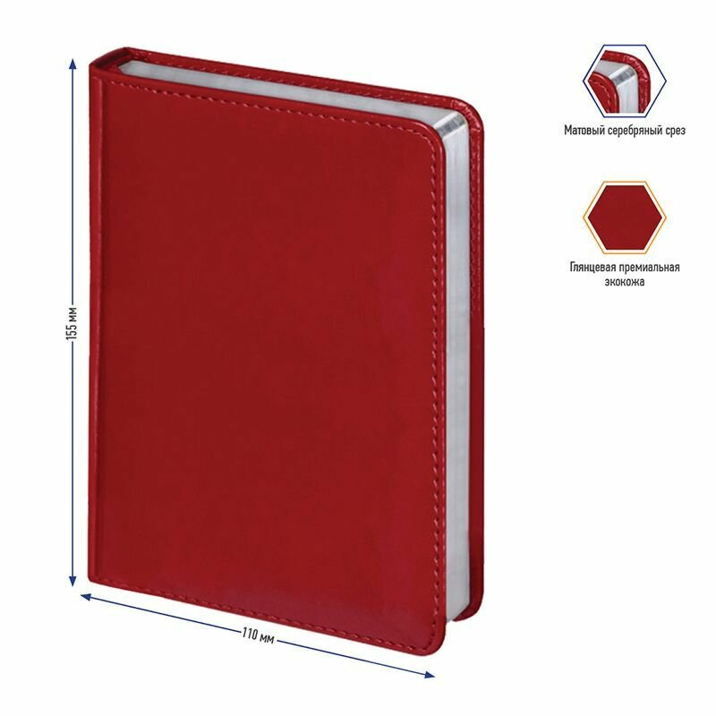 Ежедневник недатированный, А6, 160л., кожзам, Berlingo "Silver Pristine", серебр. срез, красный