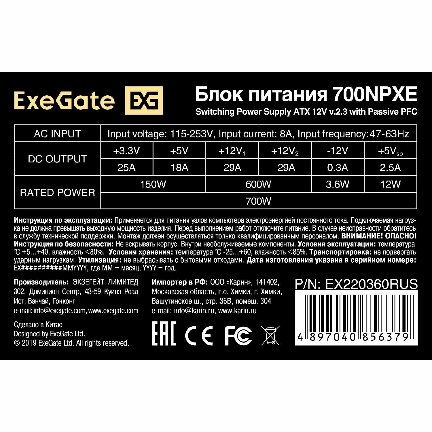 Блок питания ExeGate 700W 700NPXE EX220360RUS-PC black