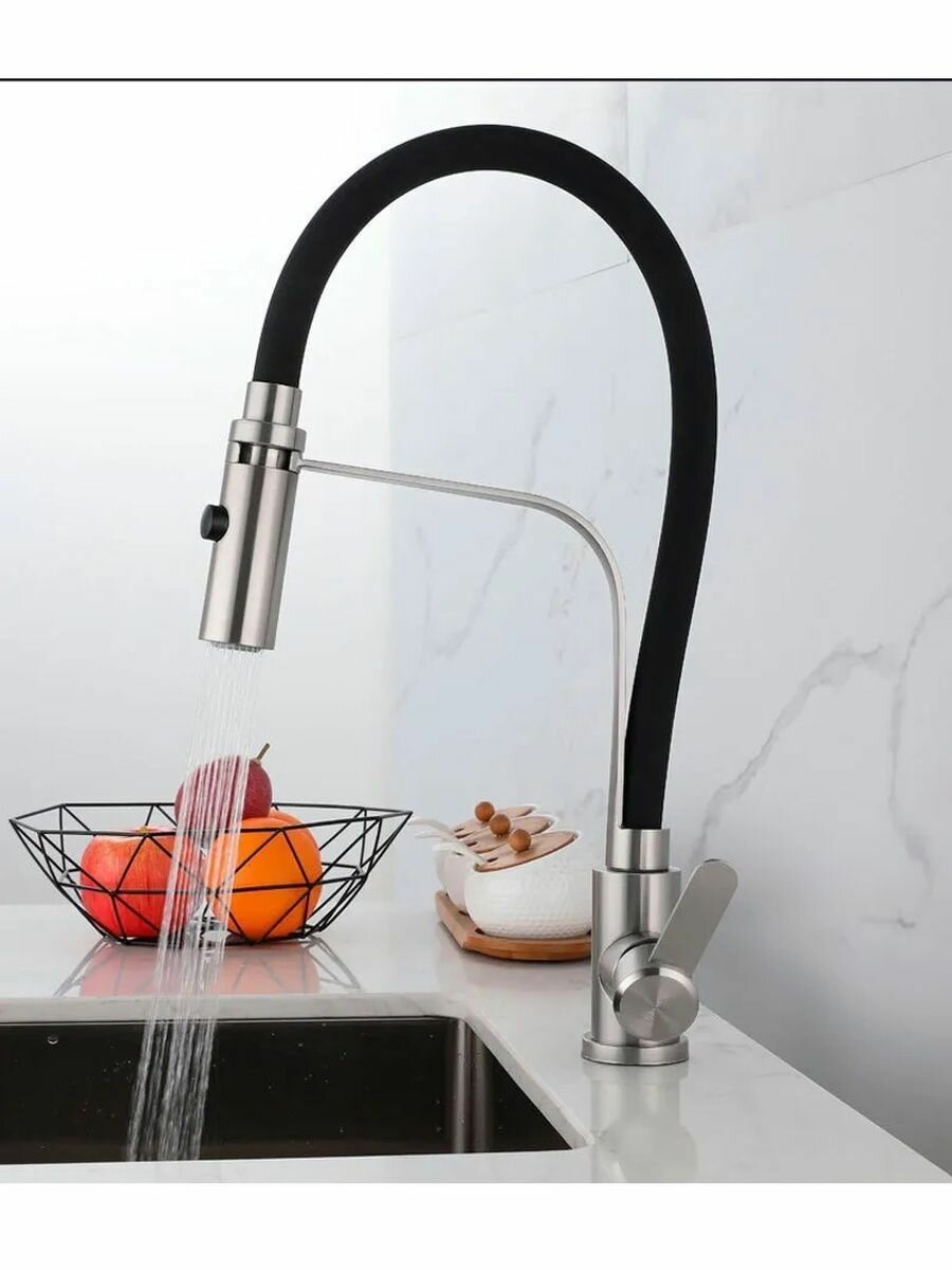 FASHUN Смеситель для кухни мойки из нержавеющей стали с гибким черным изливом A54112-7