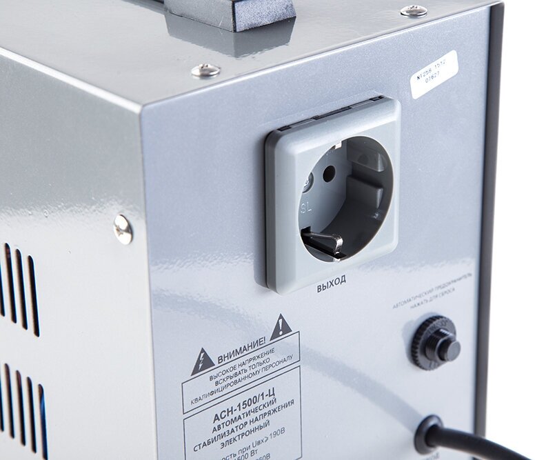 Отличный стабилизатор напряжения с номинальным напряжением 1,5 кВт. Удобно, что есть дисплей, на котором отображаются основные характеристики устройства. Цифры крупные, поэтому очки мне не нужны, чтобы рассмотреть.