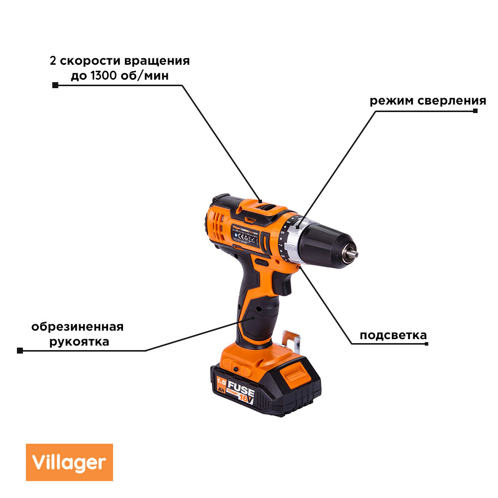 Дрель-шуруповерт аккумуляторная 35 Нм FUSE Villager VLN 3220 интересное: