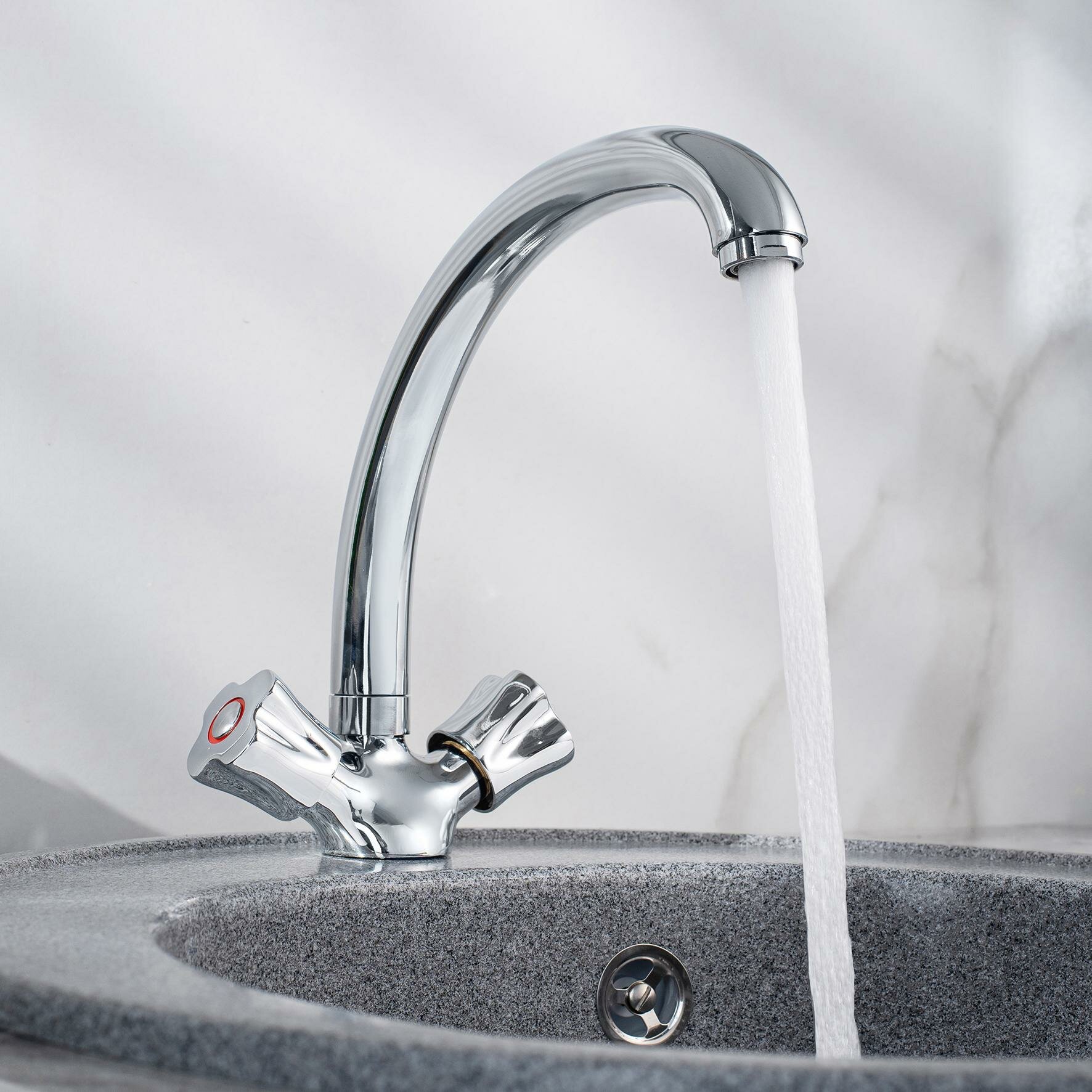 Смеситель для кухни, РМС SL116-273F, поворотный излив, двухвентильный, с гибкой подводкой интересное: