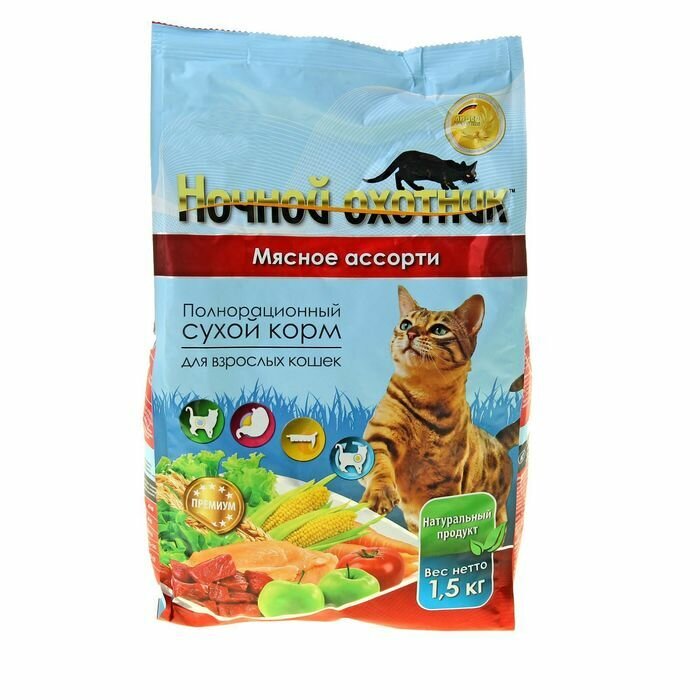 Ночной охотник Сухой корм для кошек, "Мясное ассорти", 1.5кг