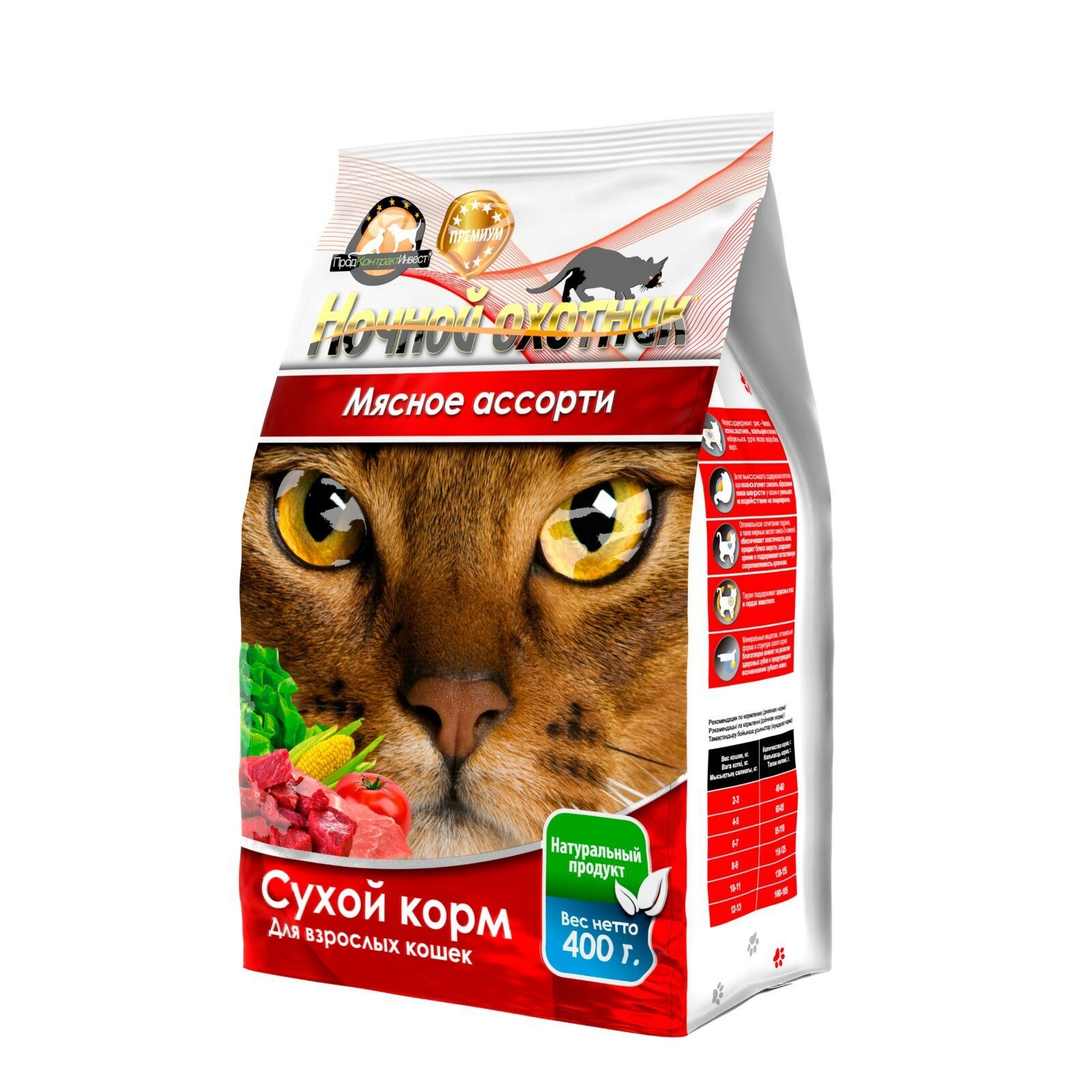 Сухой корм "Ночной охотник" для кошек, мясное ассорти, 400 г