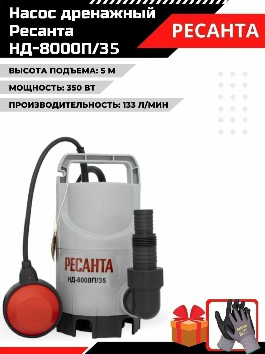 Дренажный насос Ресанта НД-8000П/35, 350 Вт, макс. напор – 5 м, 8000 л/час, для грязной воды