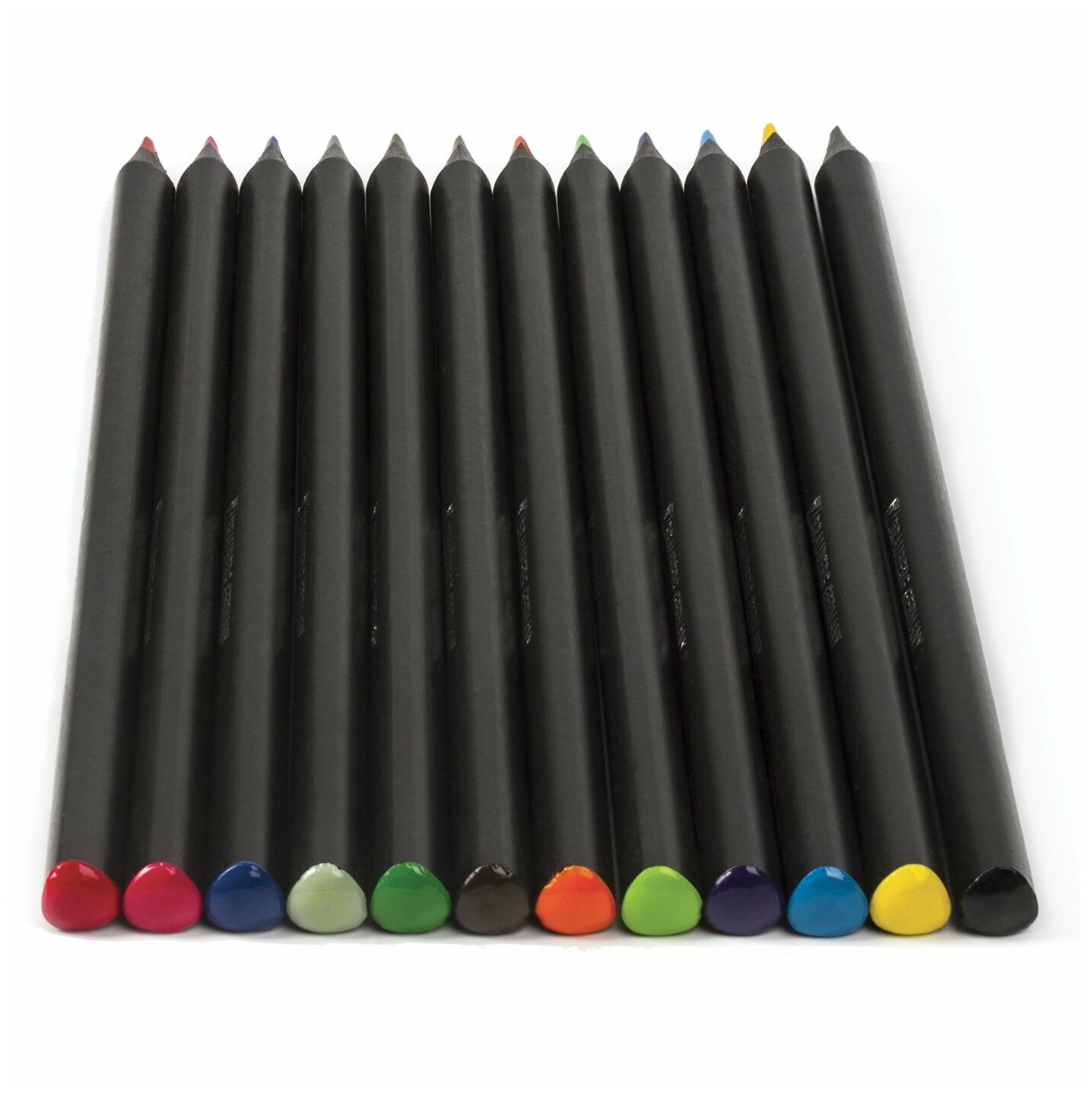 Карандаши деревянные цветные для рисования "Black Jack", набор из 12 цветов, заточенные, черный корпус, трехгранные, Brauberg