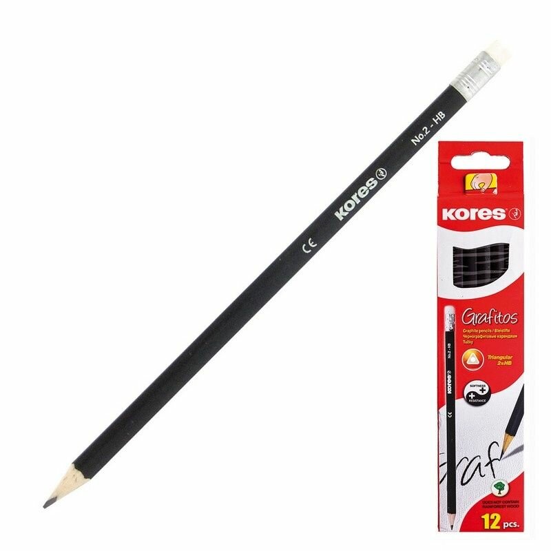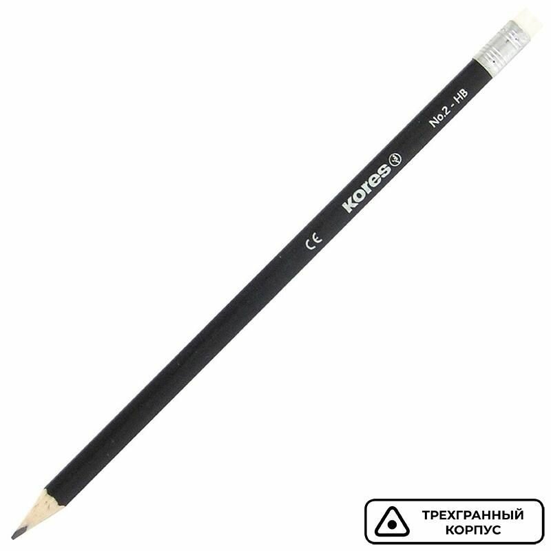 Карандаш чернографитный Kores трехгранный, HB, с ластиком интересное: