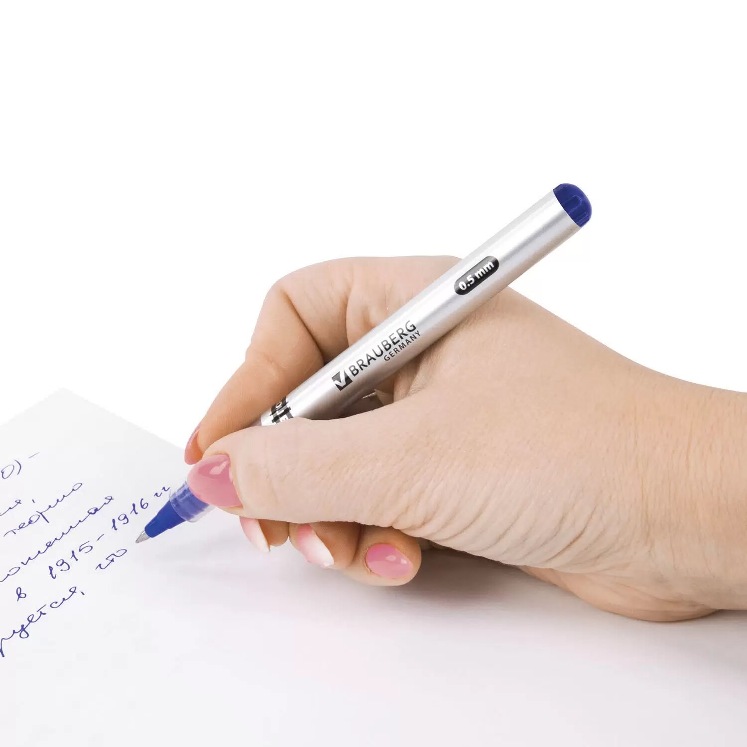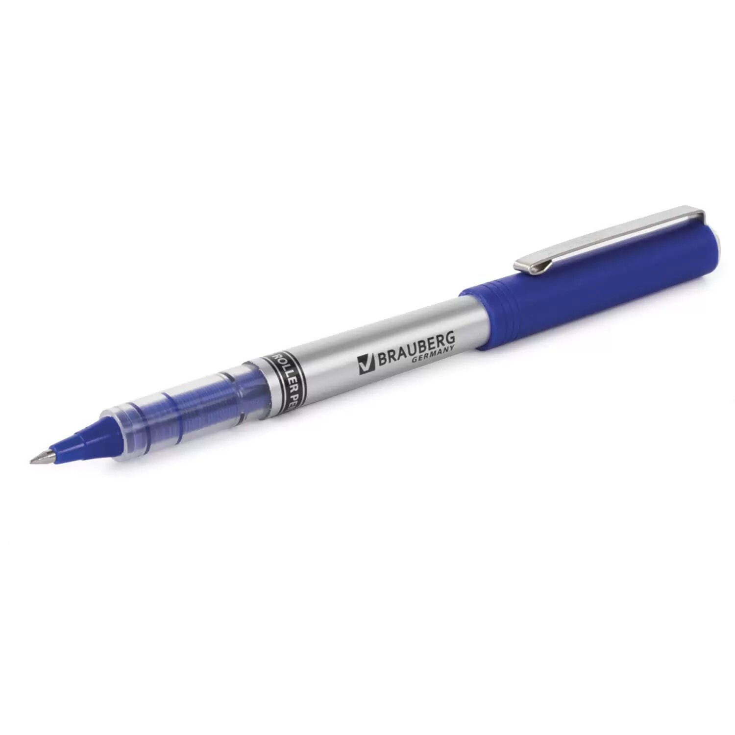 Ручка-роллер BRAUBERG "Flagman", синяя, корпус серебристый, хромированные детали, узел 0,5 мм, линия письма 0,3 мм, 141556 (цена за 1 ед.товара)