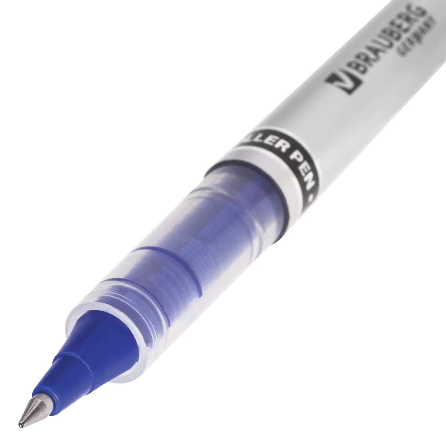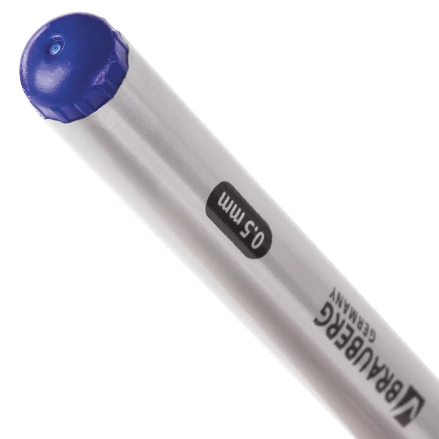 Ручка-роллер BRAUBERG "Flagman", синяя, корпус серебристый, хромированные детали, узел 0,5 мм, линия письма 0,3 мм, 141556 Комплект - 12 шт.