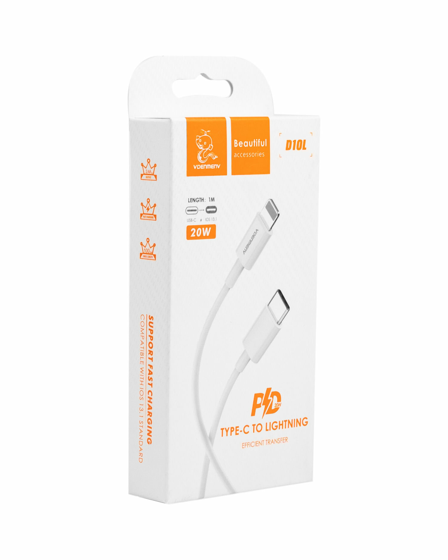 Купить Кабель Denmen D10L для iPhone, iPad Type-C на Lightning 20W 1m белый