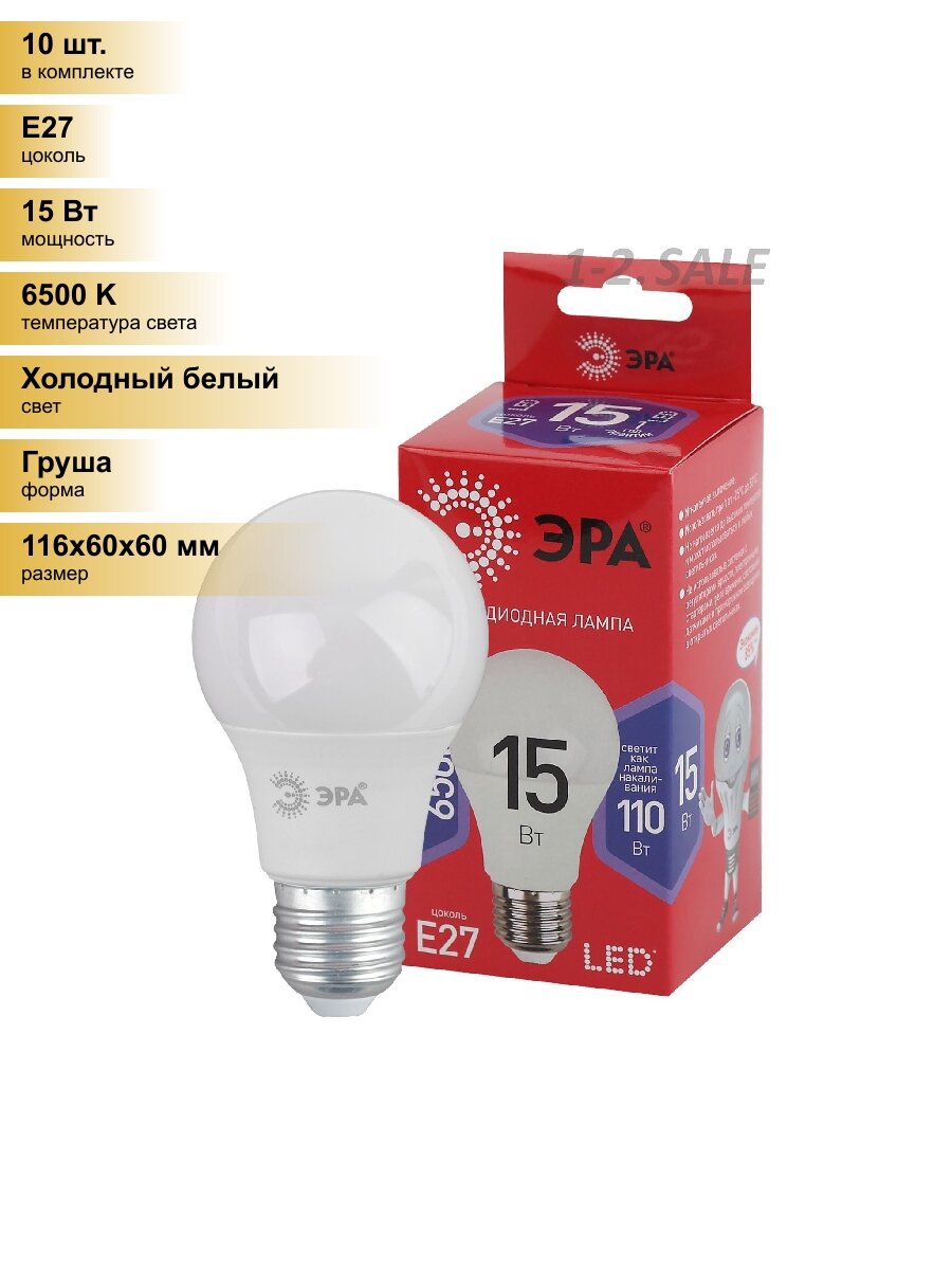 Сохранить(10 шт.) Светодиодная лампочка ЭРА ECO ЛОН A60 E27 15W(1200lm) 6500K 6K 116х60 A60-15W-865-E27 7769 Холодный белый. Цоколь E27 интересное: