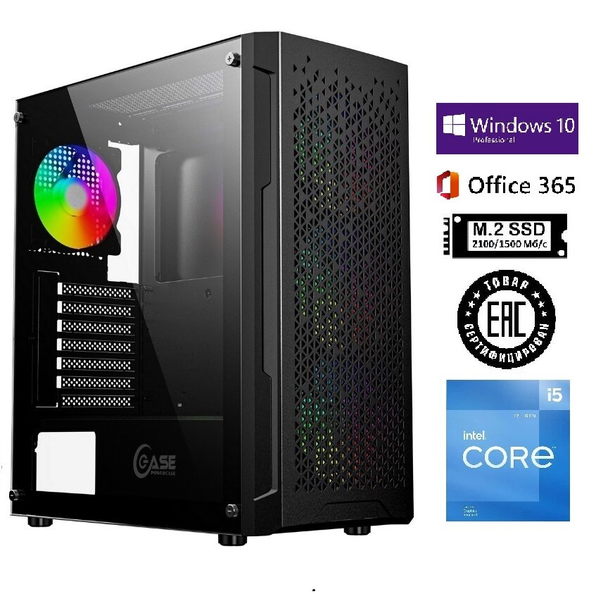 Купить Системный блок SH-Intel Core i5-12400F/H610/DDR4 16Gb/SSD M.2 512Gb/GT 730 4Gb/Powercase Mistral Evo Air-Black