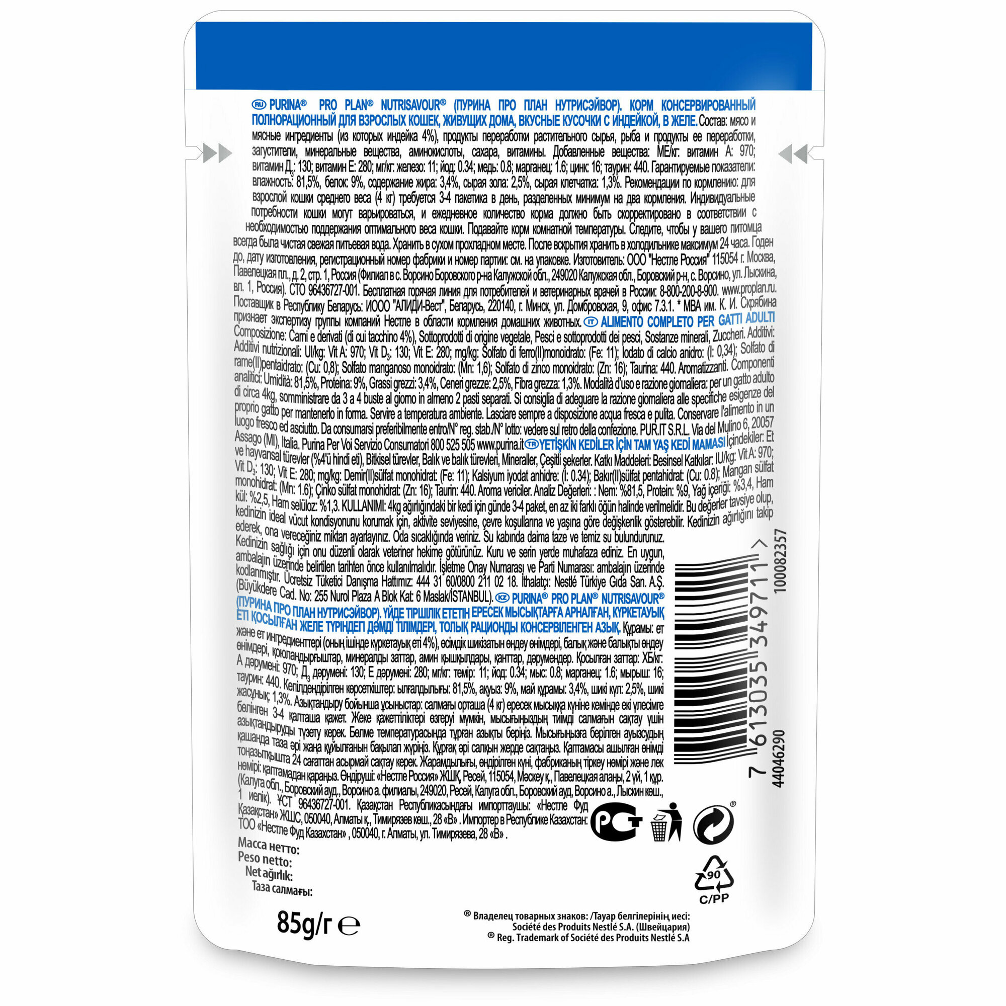 Купить Корм влажный (паучи) Pro Plan Nutri Savour Housecat для взрослых кошек живущих дома, кусочки в желе, индейка, 85 г * 26 штук