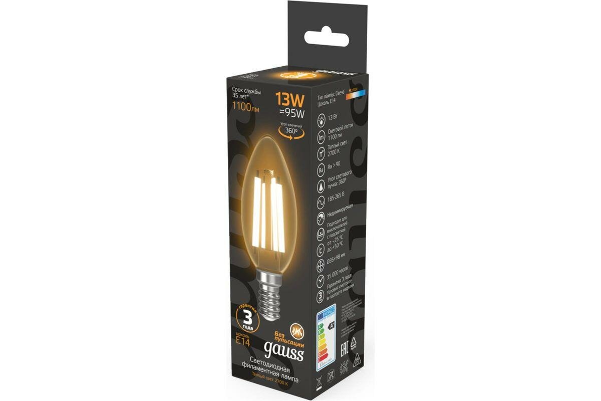 Лампа LED GAUSS Filament 13W/E14/2700K свеча 103801113