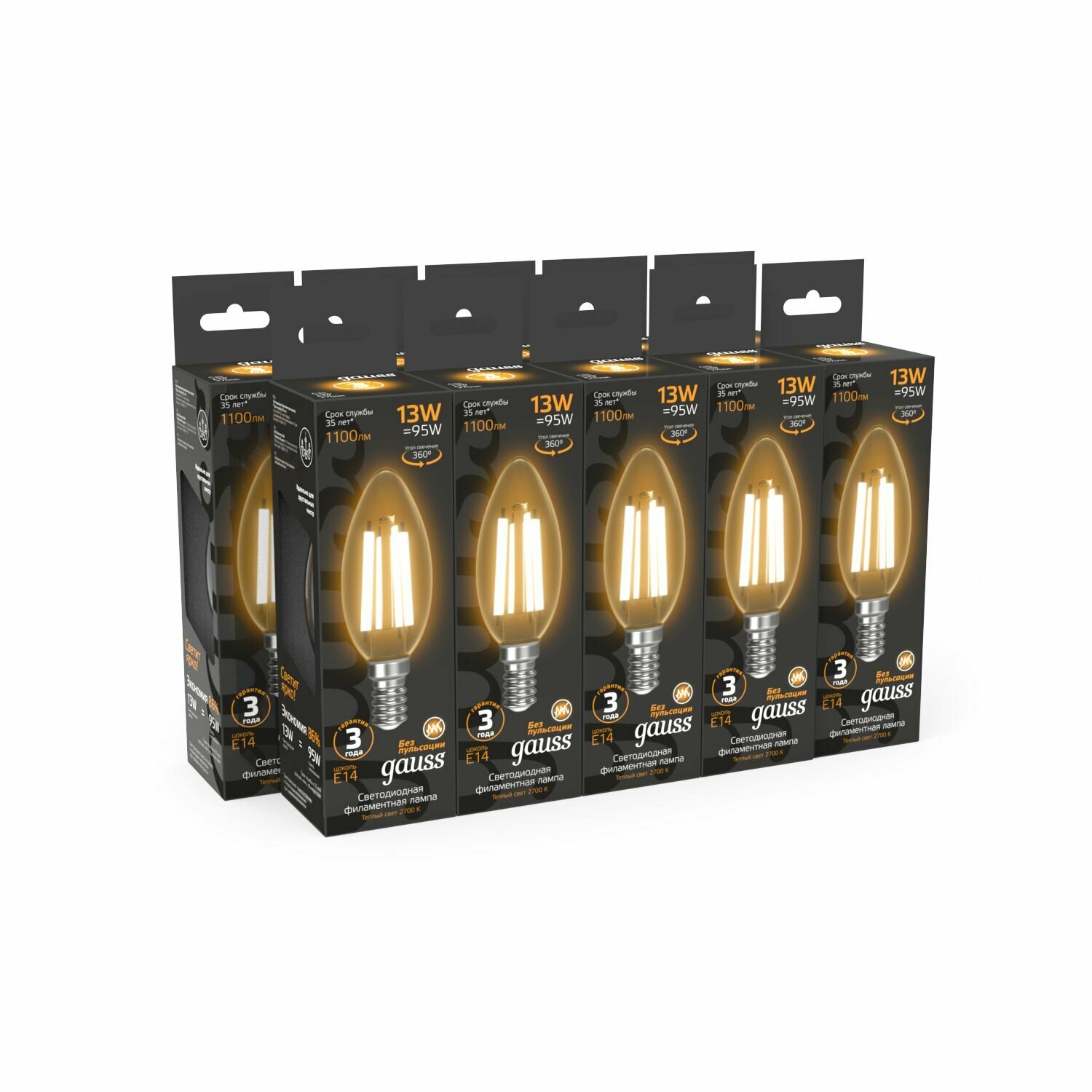Купить Светодиодная лампа Gauss Filament Свеча 13W 1100lm 2700К Е14 LED 1/10/50