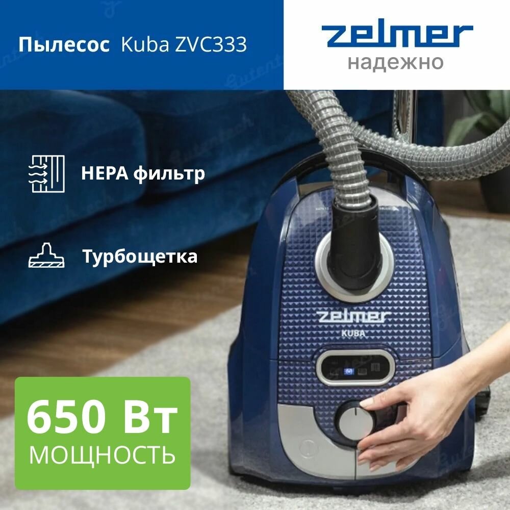 Пылесос Zelmer Kuba ZVC333 / 4 насадки / турбощётка / HEPA фильтр / пылесборник мешок
