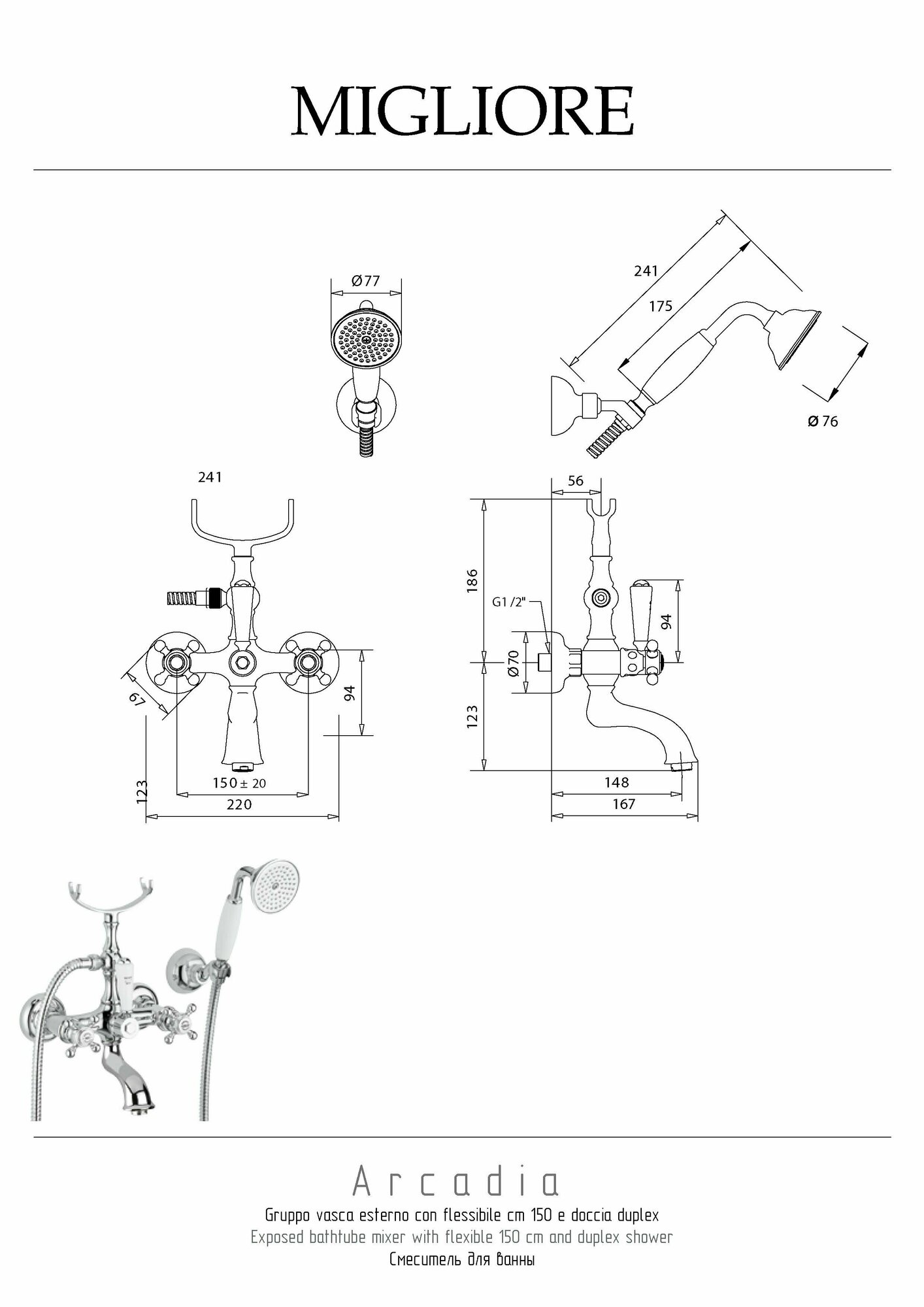 Migliore ARCADIA Смеситель для ванны внешний с поворотным изливом, хром 18386 интересное: