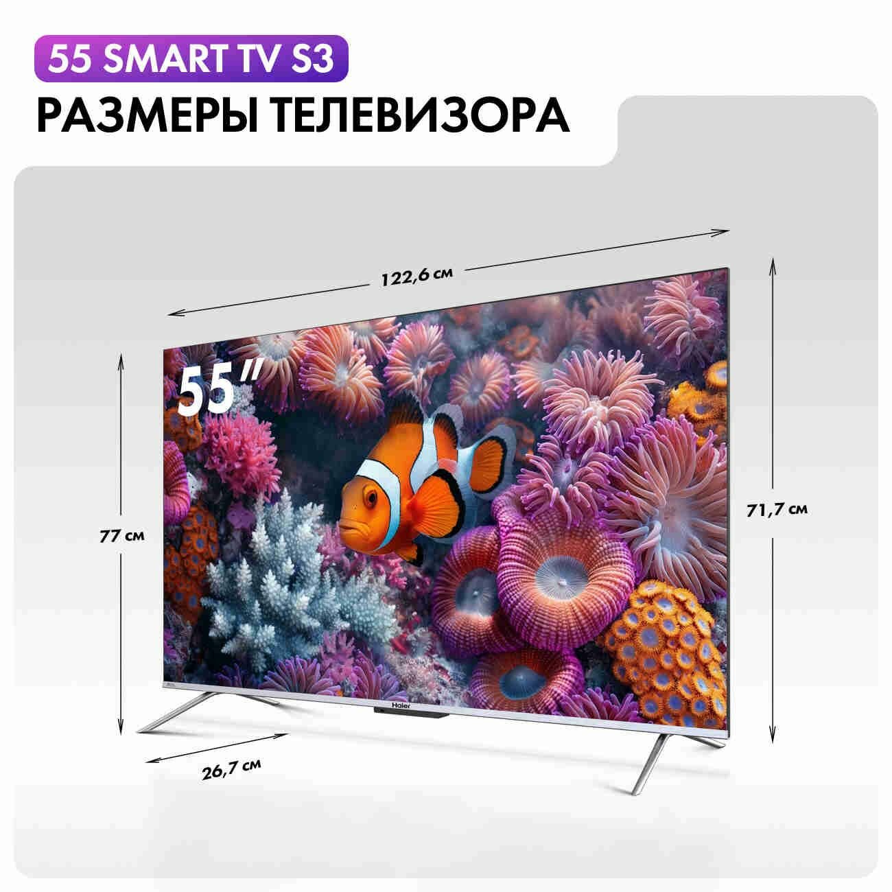 Ниже Вы можете прочитать отзывы на Телевизор Haier 55 Smart TV S3 55" 4K UHD, черно-серый, ознакомится с подробными характеристиками, посмотреть интересные обзоры и фотографии на Телевизор Haier 55 Smart TV S3 55" 4K UHD, черно-серый.