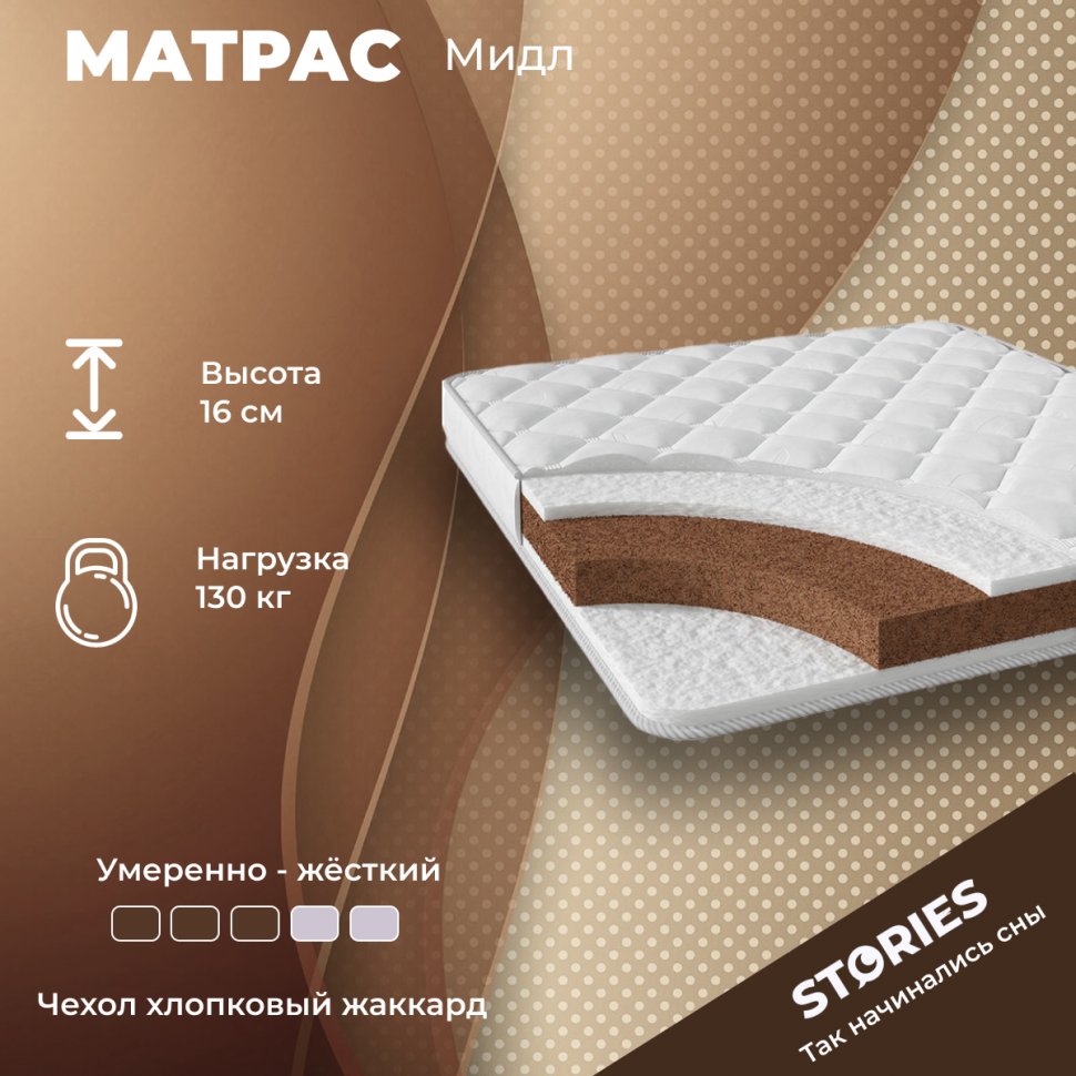 Матрас Stories Мидл, 80x190, высота 16 см, беспружинный