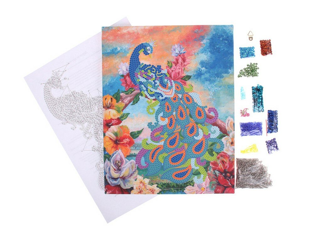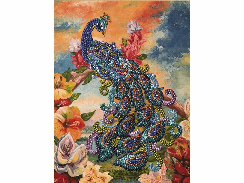 Мозаика из пайеток на холсте "Павлин" МХ-09