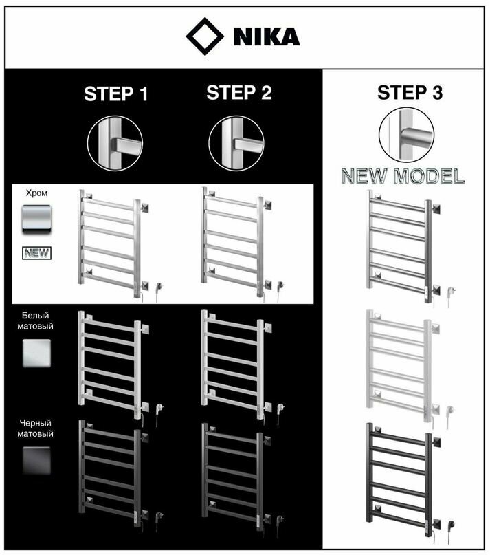 Полотенцесушитель Электрический Ника STEP-3 600х500 хром арт. STEP-3 60/50 прав