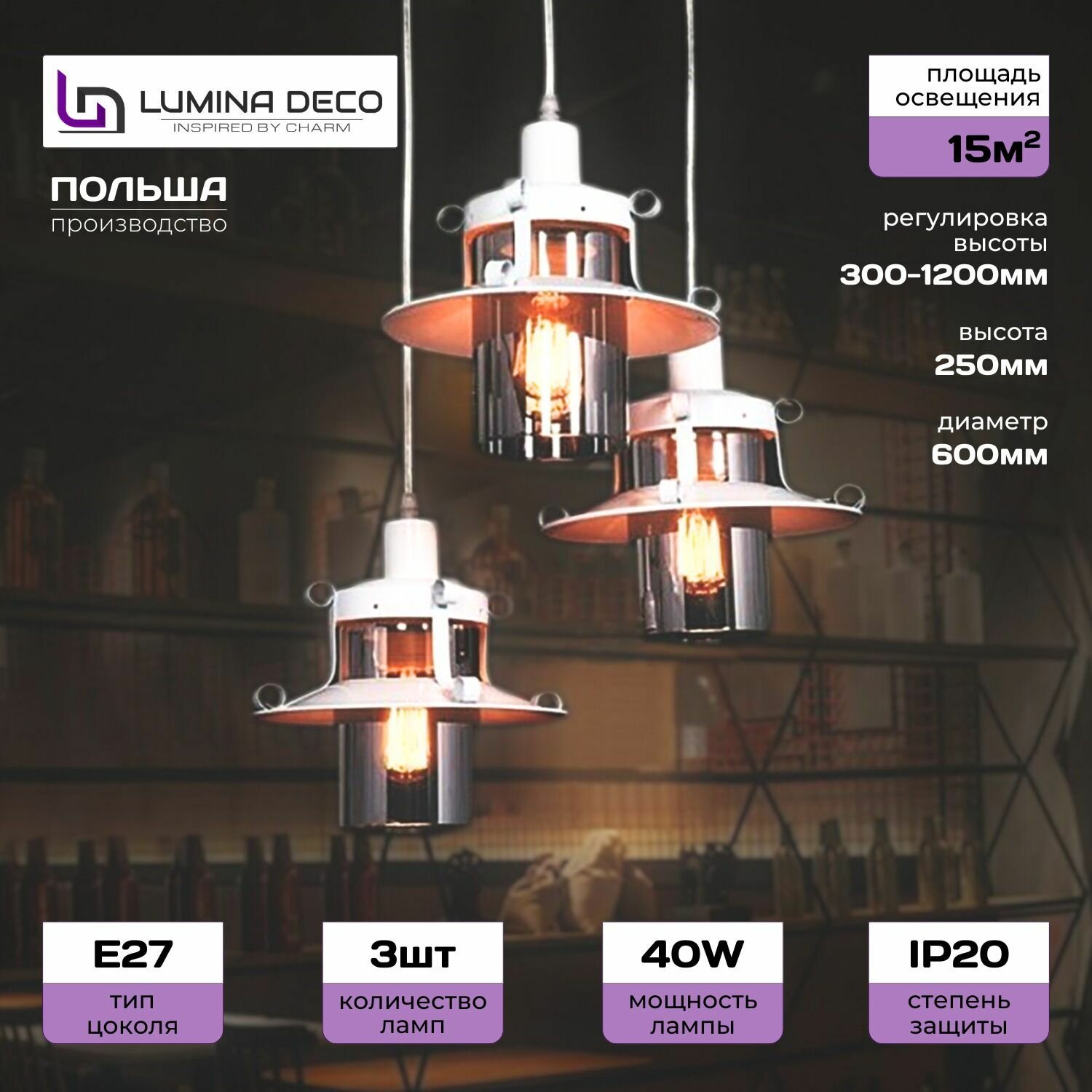 Светильник подвесной Lumina Deco Capri LDP 11327B-3 PR WT, E27, кол-во ламп:3шт., Белый