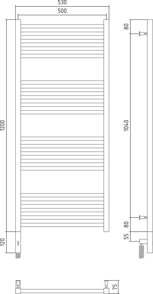 Полотенцесушитель Электрический Тругор Пэк сп 5 П 60х50 черный ВГП
