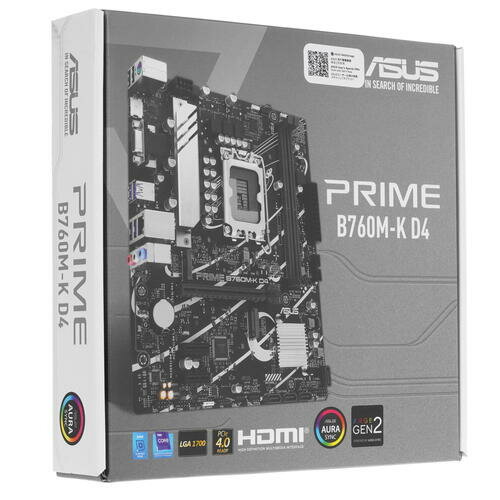 Материнская плата ASUS Prime B760M-K D4 B760 Socket-1700 2xDDR4, 4xSATA3, RAID, 2xM.2, 1xPCI-E16x, 4xUSB3.2, D-Sub, HDMI, Glan, mATX
