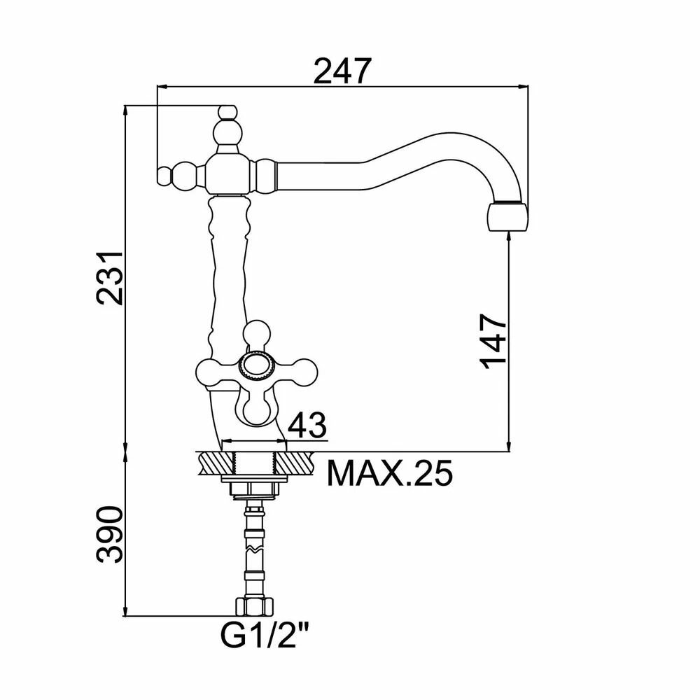 Смеситель кухня на гайке высокий поворотный, крест, антик бронза латунь Accoona A4571C
