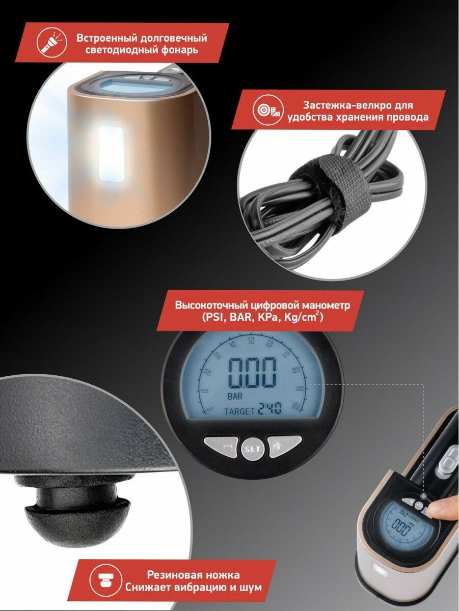 Компрессор автомобильный с электронным манометром и функцией "автостоп" модель АС630Ма