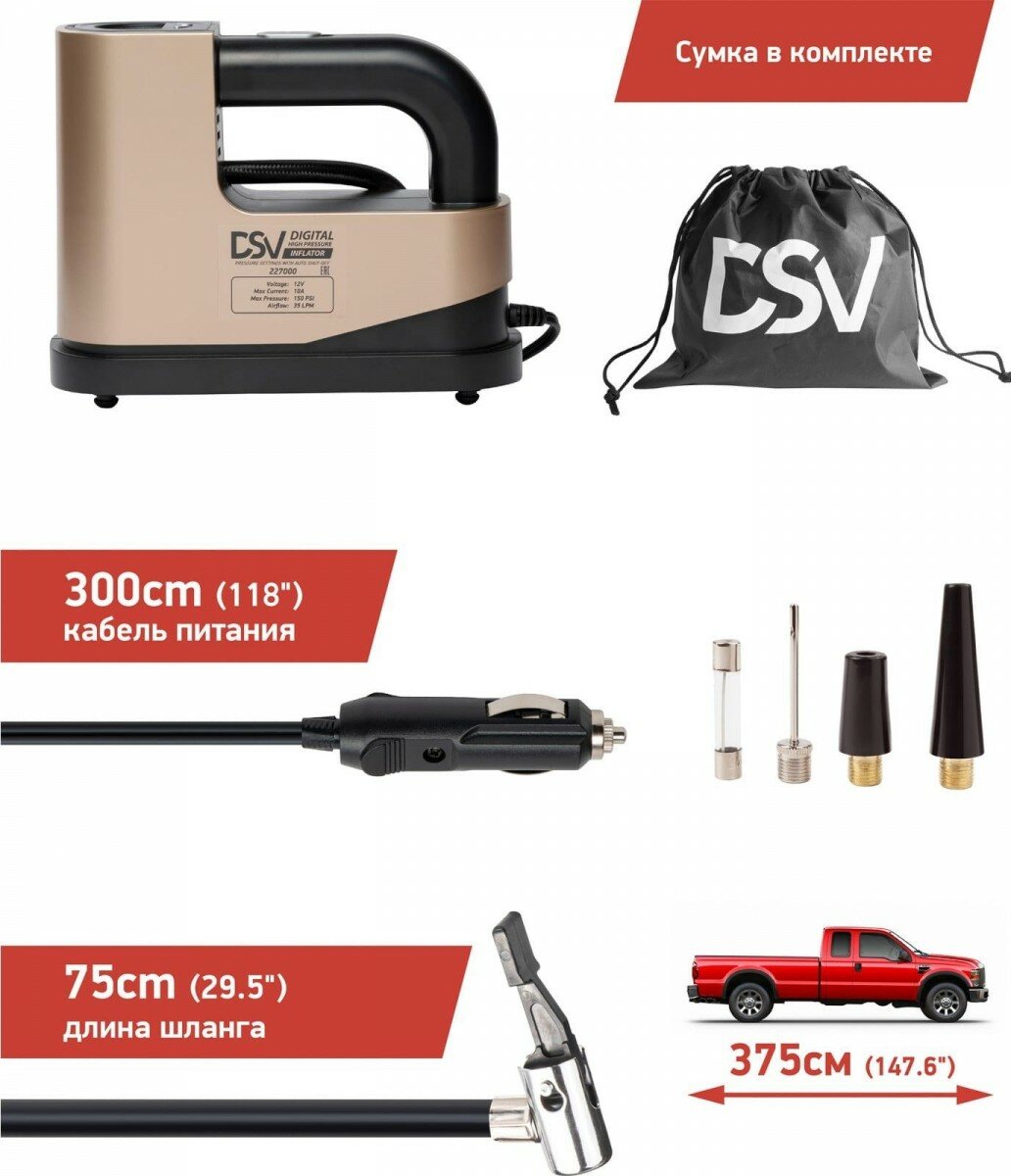 Купить Компрессор автомобильный 35л/мин. 10атм. 12А 12V в прикуриватель (сумка) DSV