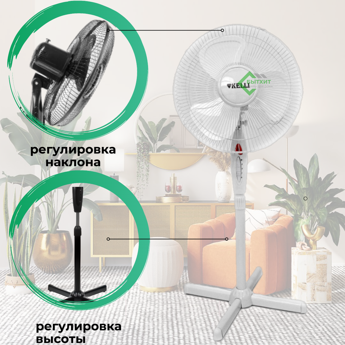 Вентилятор напольный KL-1016 Kelli 45Вт 16”/40см блок4шт цв.в асс.