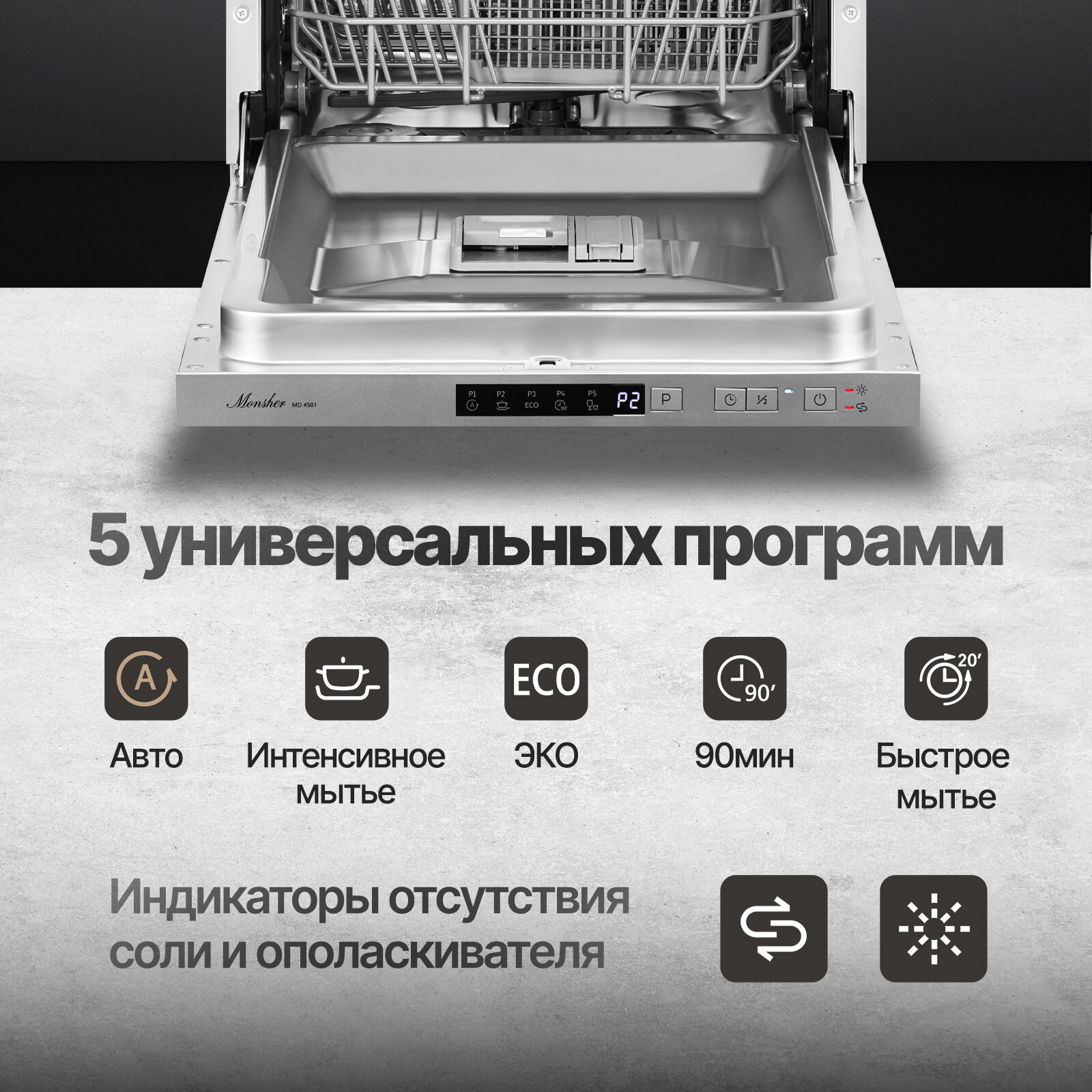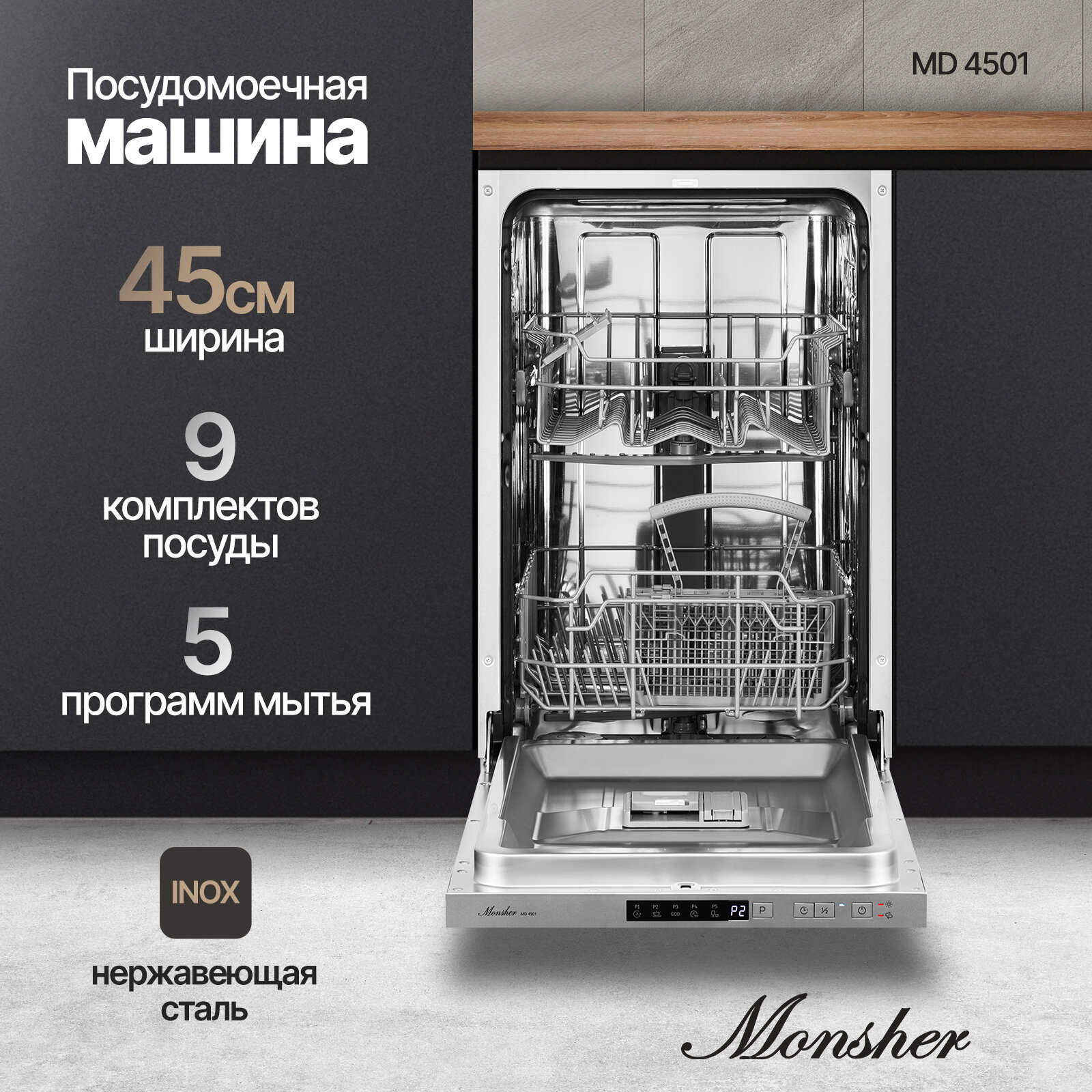 Посудомоечная машина встраиваемая Monsher MD 4501 (Модификация 2024 года) интересное: