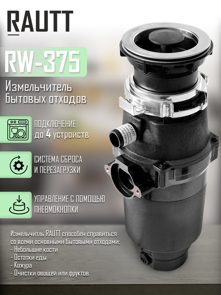 Измельчитель бытовых отходов RAUTT, RW-375, электрический, встраиваемый, 370 Вт, 1500 мл, измельчитель пищевых отходов кухонный