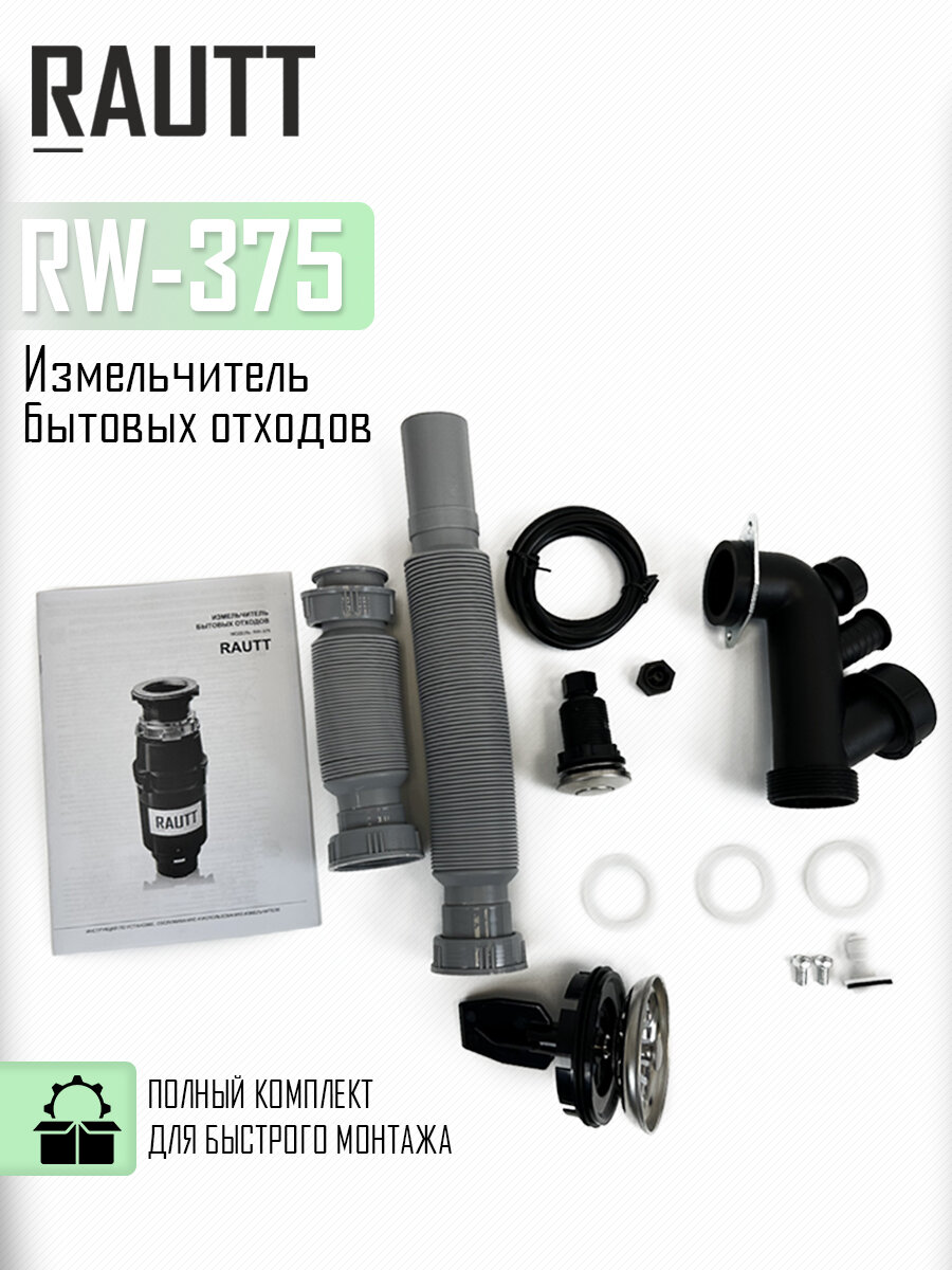 Измельчитель бытовых отходов RAUTT, RW-375, электрический, встраиваемый, 375 Вт, 1500 мл, измельчитель пищевых отходов кухонный