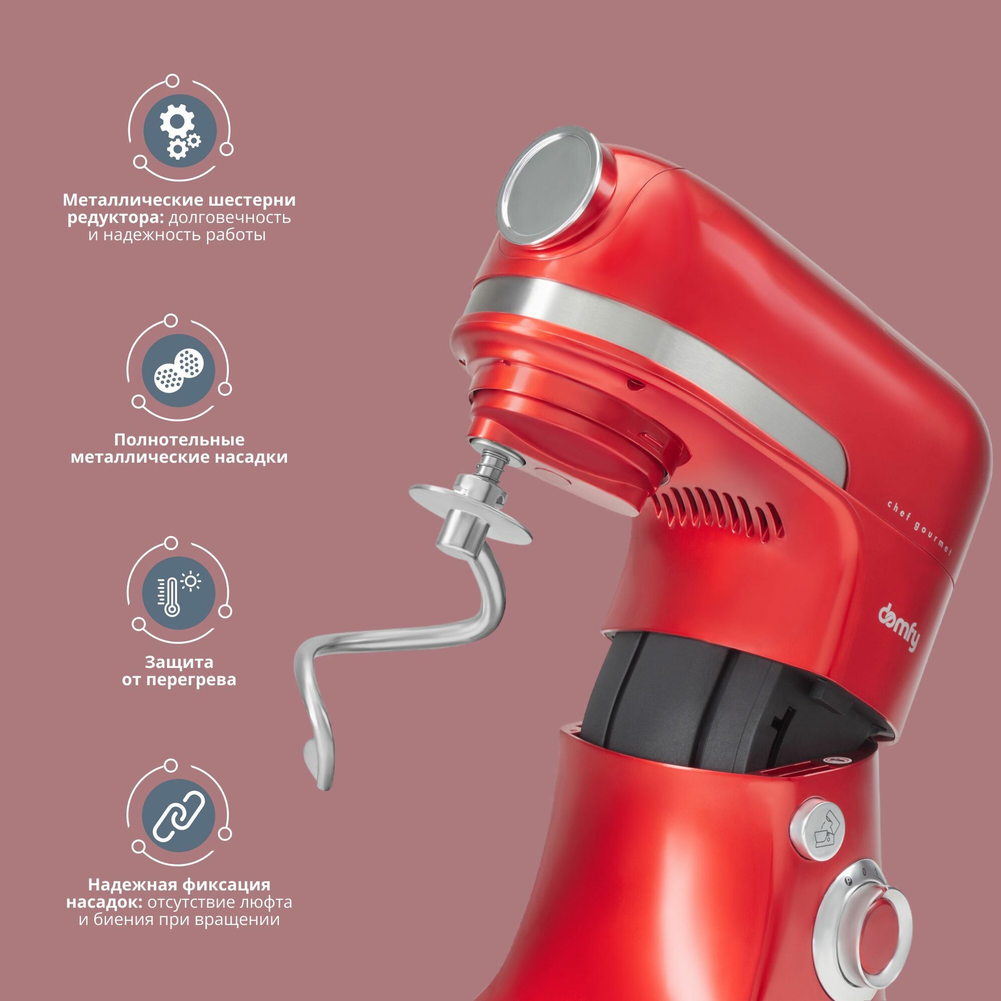Кухонная машина Domfy DSС-KM502, 6 в 1 планетарный миксер + блендер + мясорубка, мощность 2000Вт интересное: