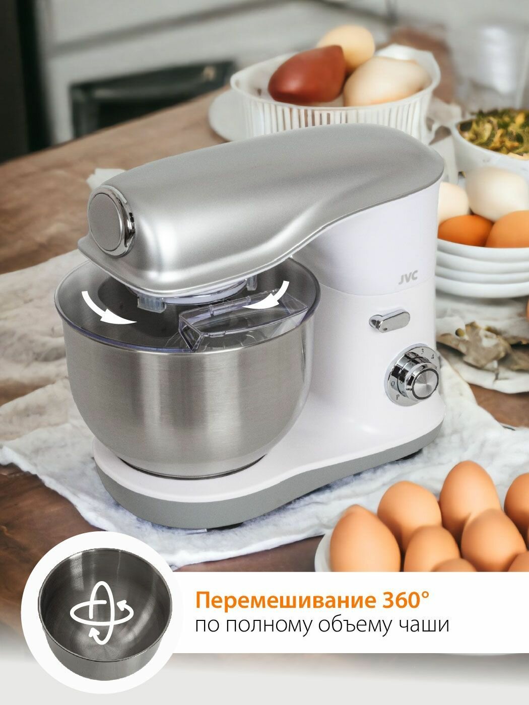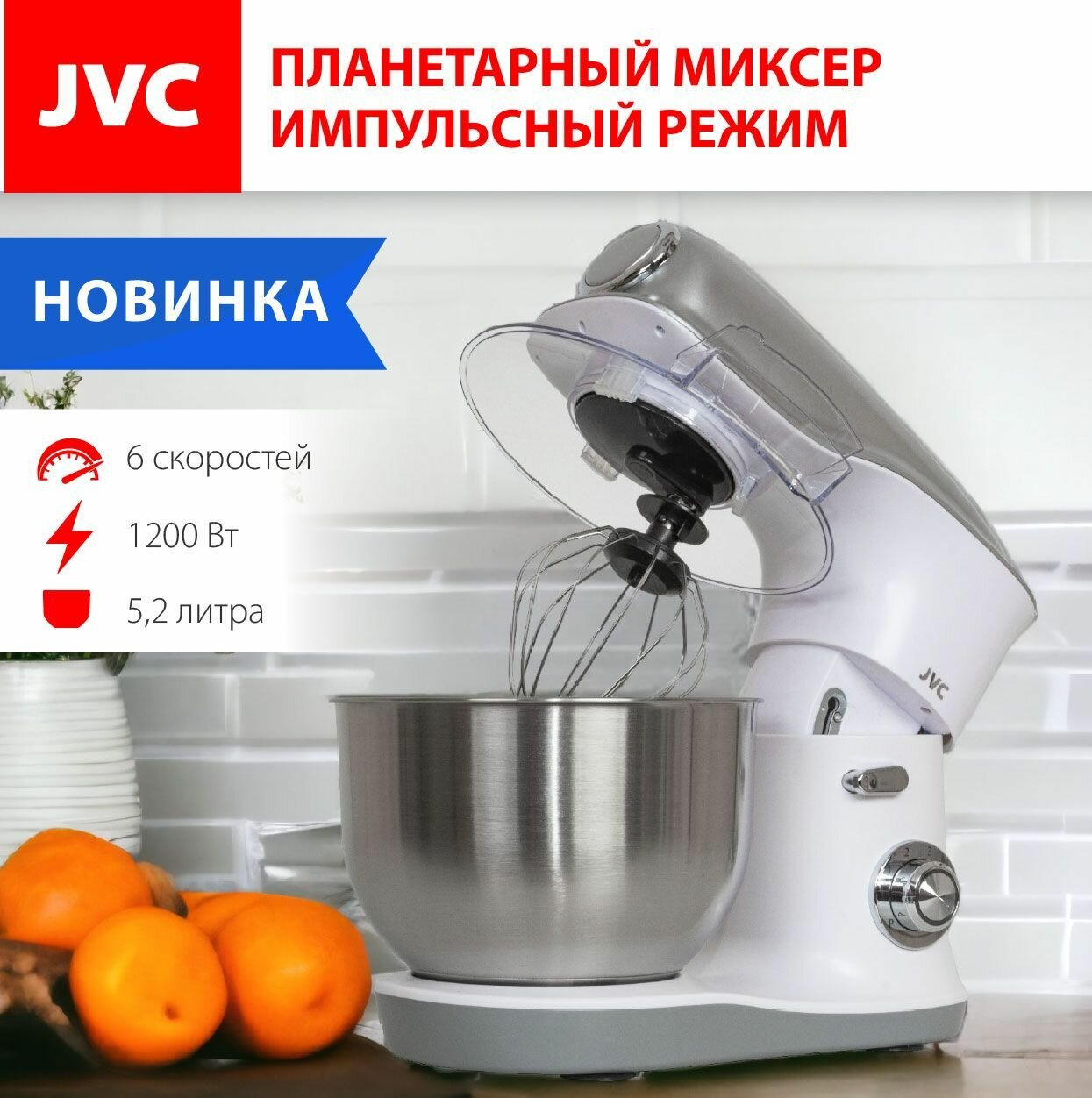 Миксер планетарный JVC JK-MX510 SILVER 5.2л, 1200Вт интересное: