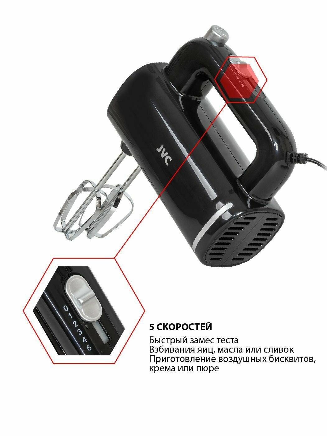 Миксер JVC JK-MX111 (5 скоростей, взбивание/замешивание)