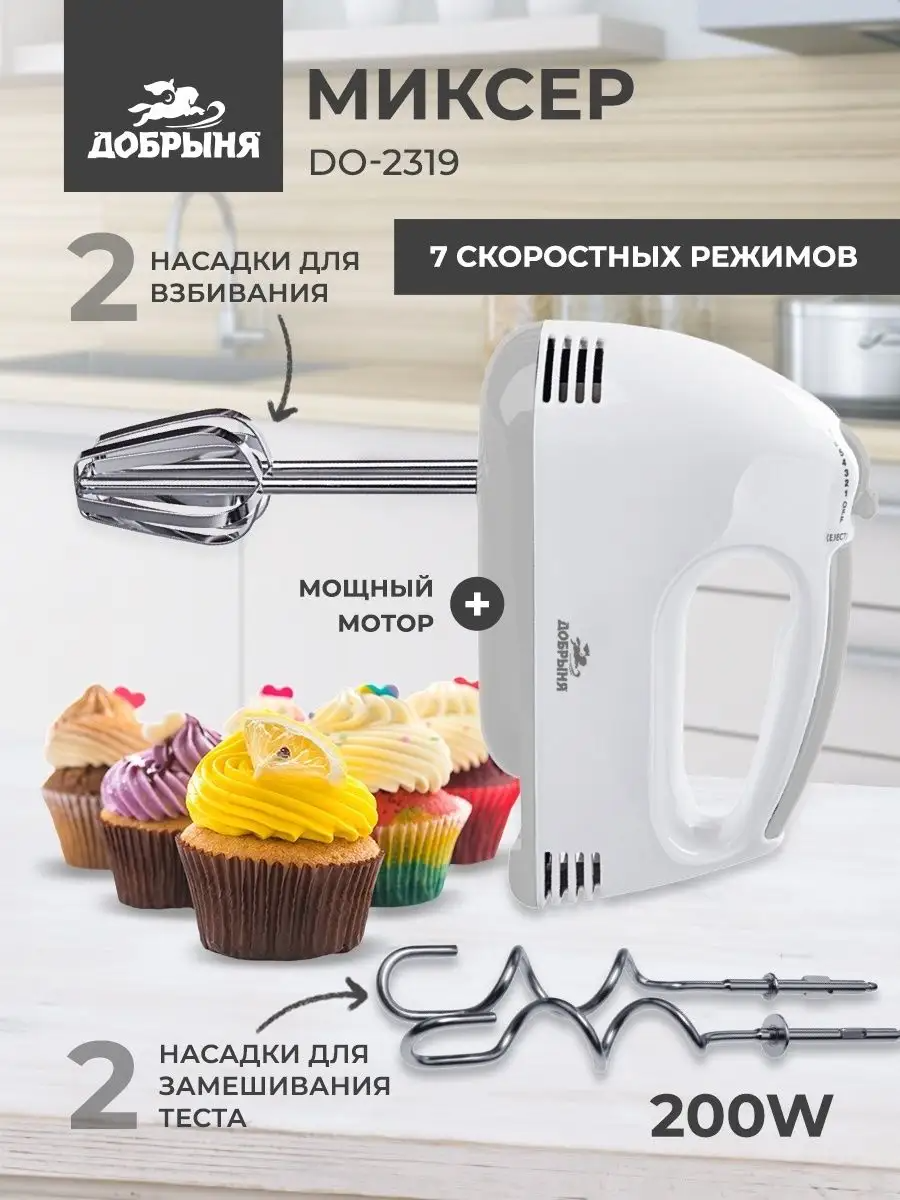 Миксер 200ВТ 7 Ск.режимов Добрыня DО-2319 интересное: