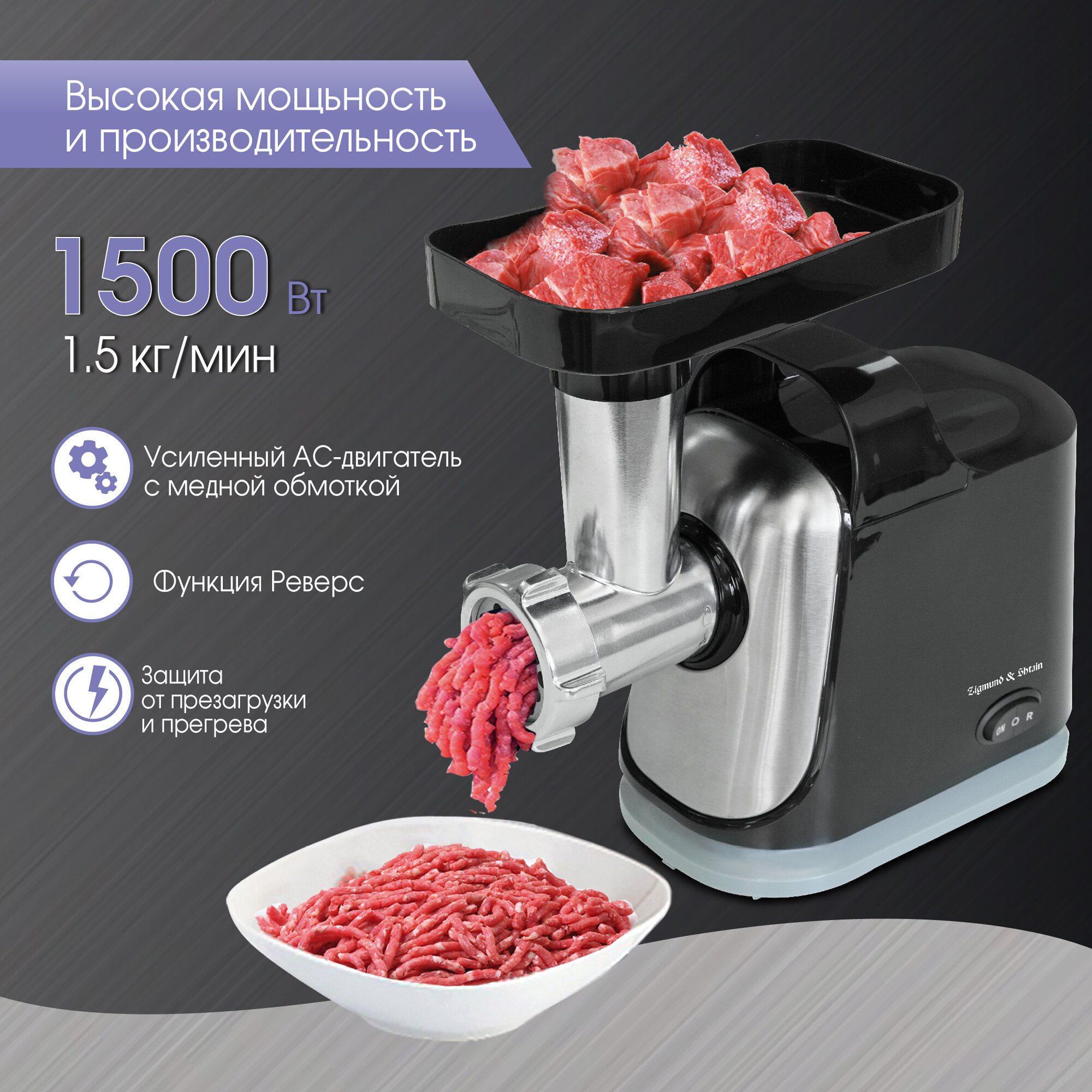 Мясорубка электрическая Zigmund & Shtain ZMG-043, 1500 Вт, черный