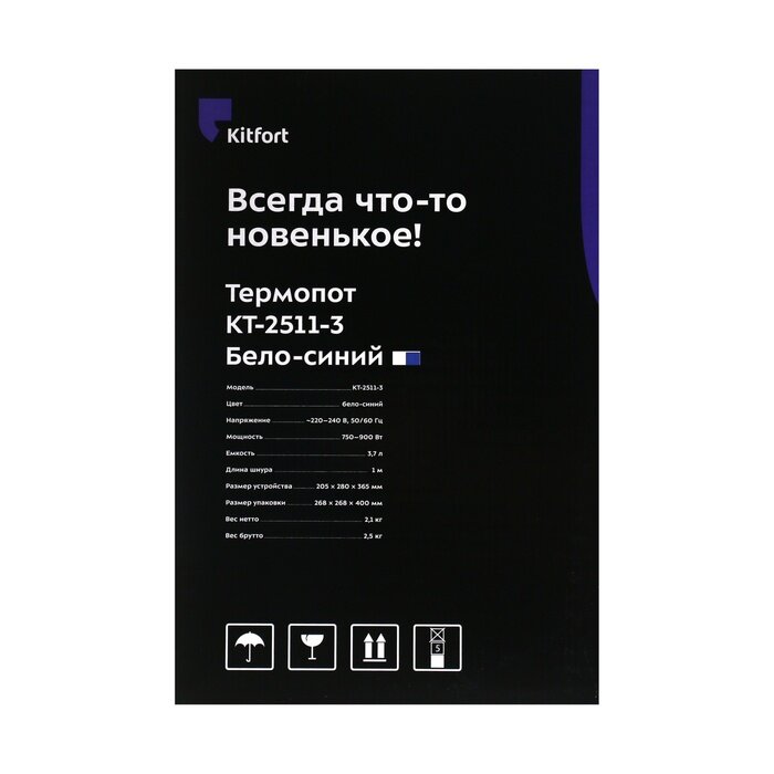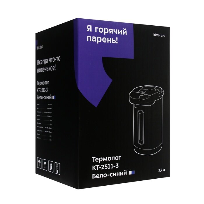 Купить Термопот Kitfort КТ-2511-3, 900 Вт, 3.7 л, бело-синий