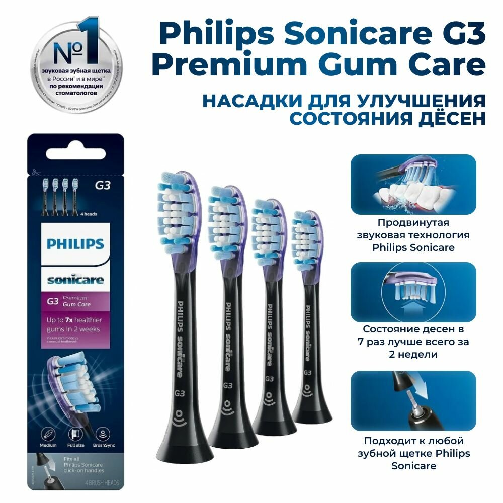 Купить Насадки Philips Sonicare G3 Premium Gum Care HX9054/33 для улучшения состояния дёсен, черный (4 шт)