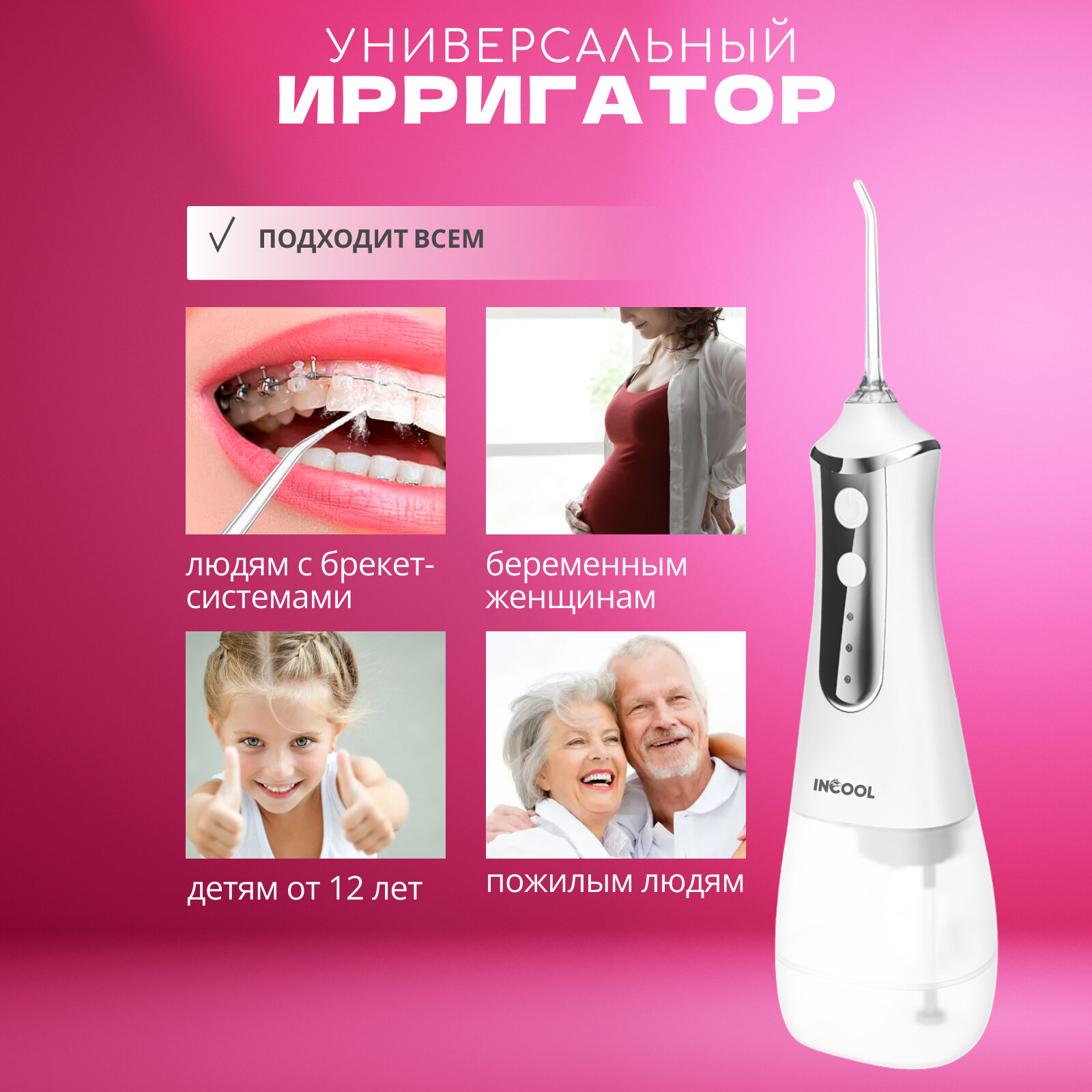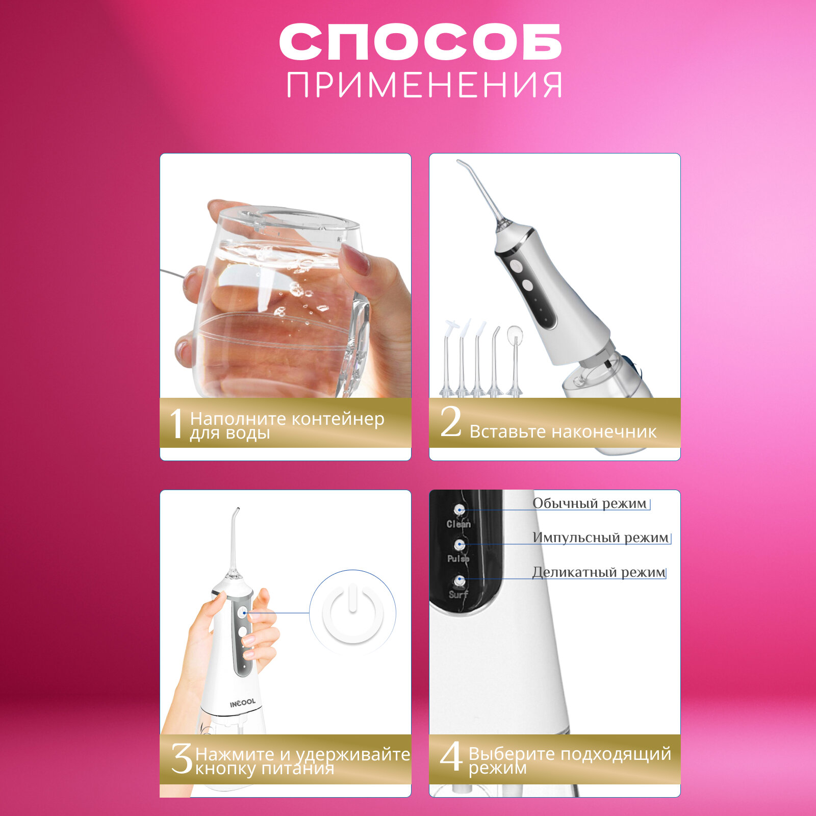 Ирригатор для зубов INCOOL, ирригатор для полости рта, 6 насадок, 3 режима мощности, 350 мл интересное: