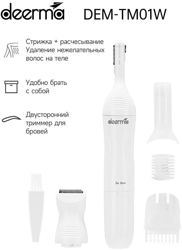 Триммер DEERMA DEM-TM01W 4 насадки, белый интересное: