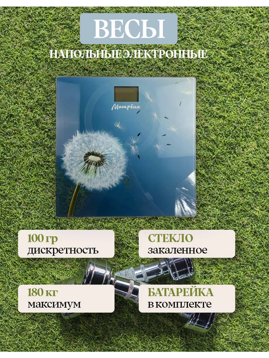 Весы напольные электронные матрёна МА-090 одуванчик (стеклянная поверхность, 180 кг)